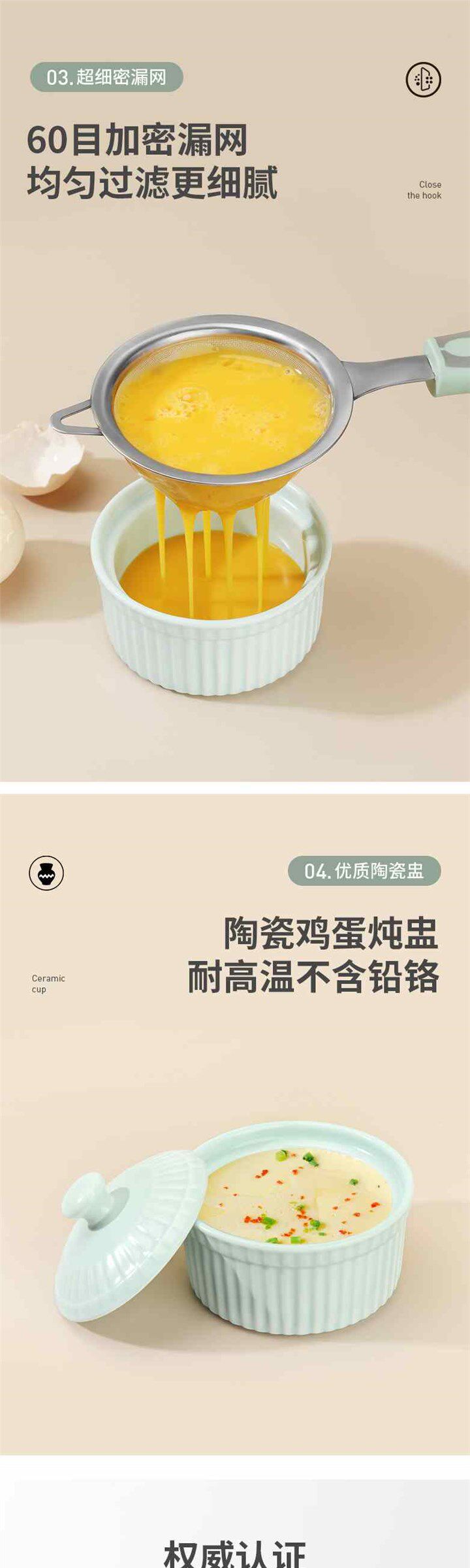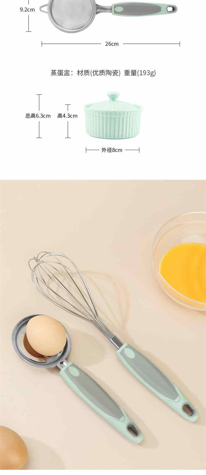 - Двухцветный набор инструментов для пищевых добавок (набор из 2 предметов (дуршлаг + яичный белок)