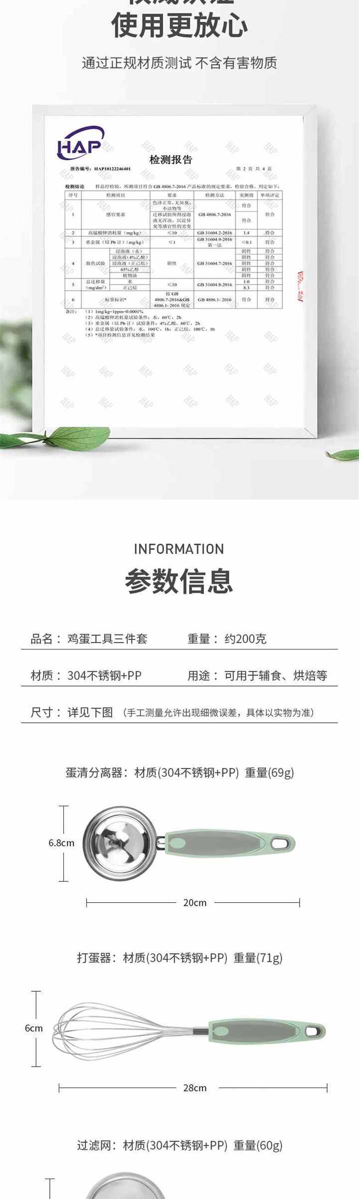 - Набор из 3 зеленых инструментов для пищевых добавок (дуршлаг + яичный белок
