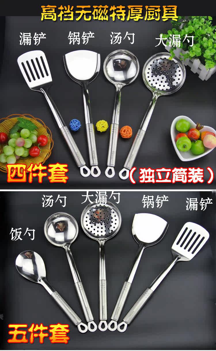 Толстая лопата горшка из нержавеющей стали, лопатка для жарки лопатки, большая протекающая ложка полная комплект лопатовой лопаты.