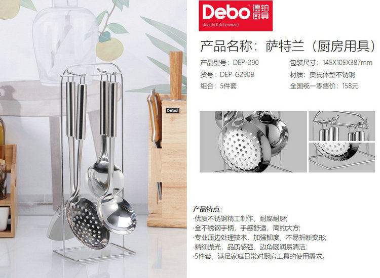 Немецкий Debo Dep Dep Sutland Kitchen Prosive Atensils 5-часовые набор из нержавеющей стали лопаточки Spoul