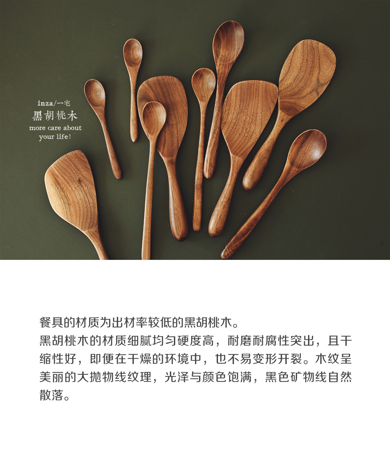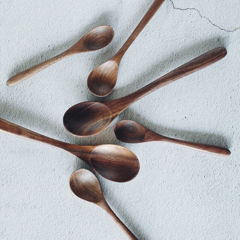 Естественная текстура.Черный грецкий орех ложка, детская ложка рисовой ложки