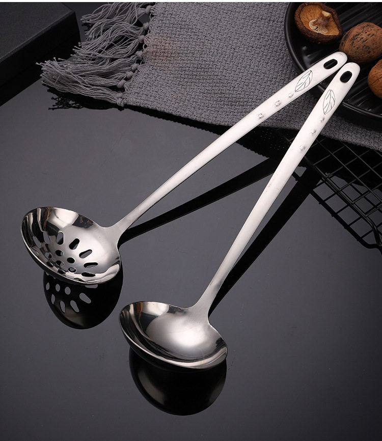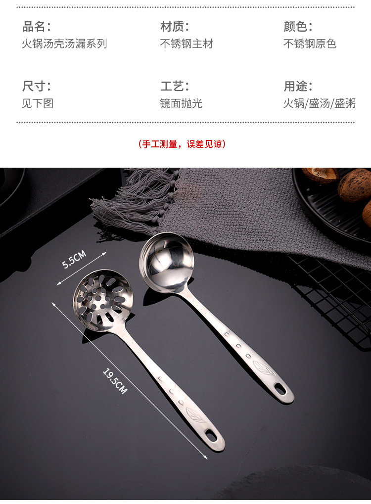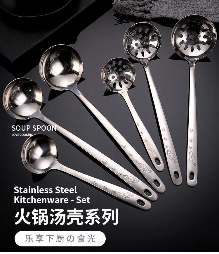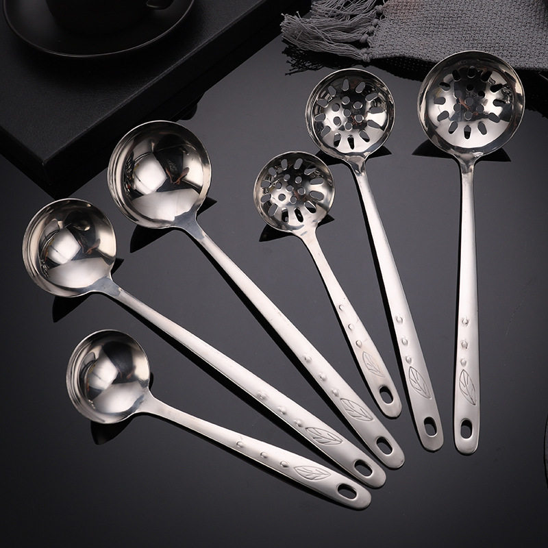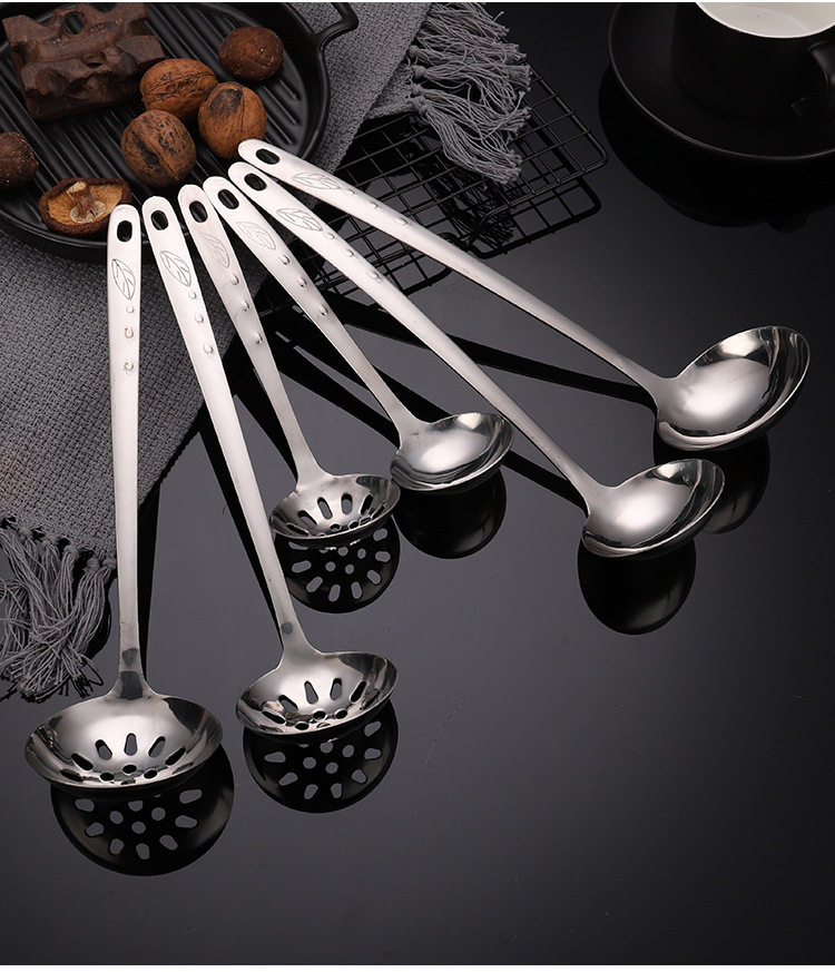 Храм Коландера ложки Домохозяйство с длинным супом большого супа 304 из нержавеющей стали утолщенная маленькая горячая ложка Железная кара Горячая горшалка Горячая утечка