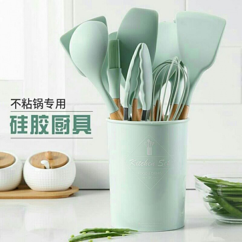 Кухонная уборка набор кухонная силиконовая зеленая деревянная ручка для неплохи кухонная утварь плюс набор для хранения