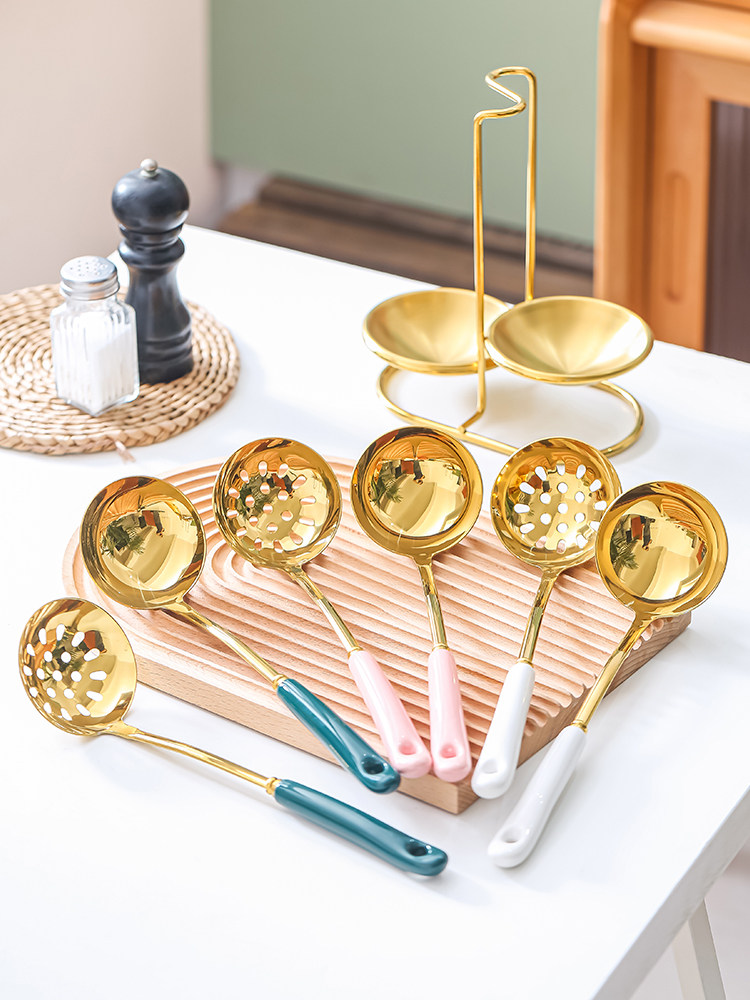Легкий роскошный суп из супа из нержавеющей стали Горячий горшок с двумя -один ложка с длинной ложкой ложкой ложки ложки супа Spoon Spoon Merchant для торговцев