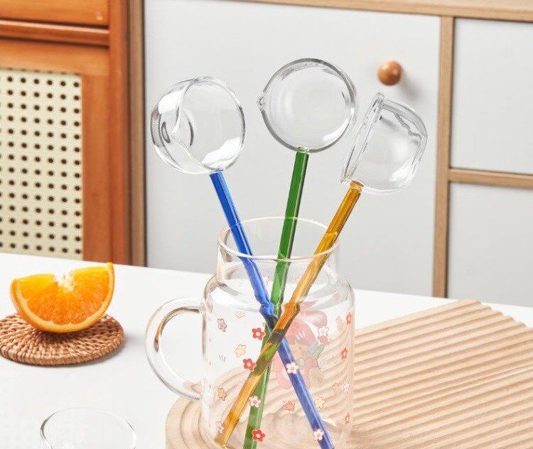 Длинная стеклянная суп -ложка, чайная ложка короткое видео, блогер блогер приправляя ложка стеклянная ложка апельсиновая зеленая стеклянная ложка.