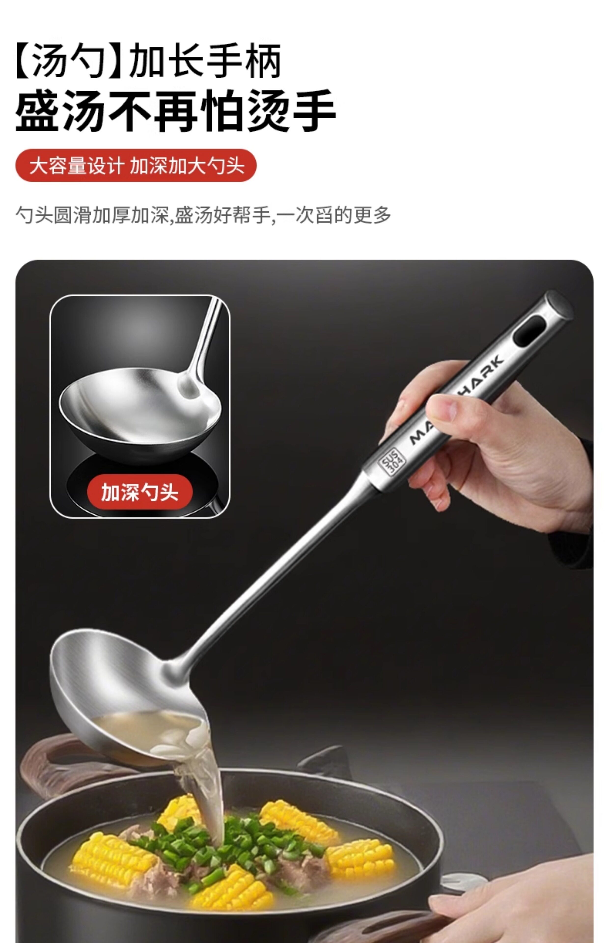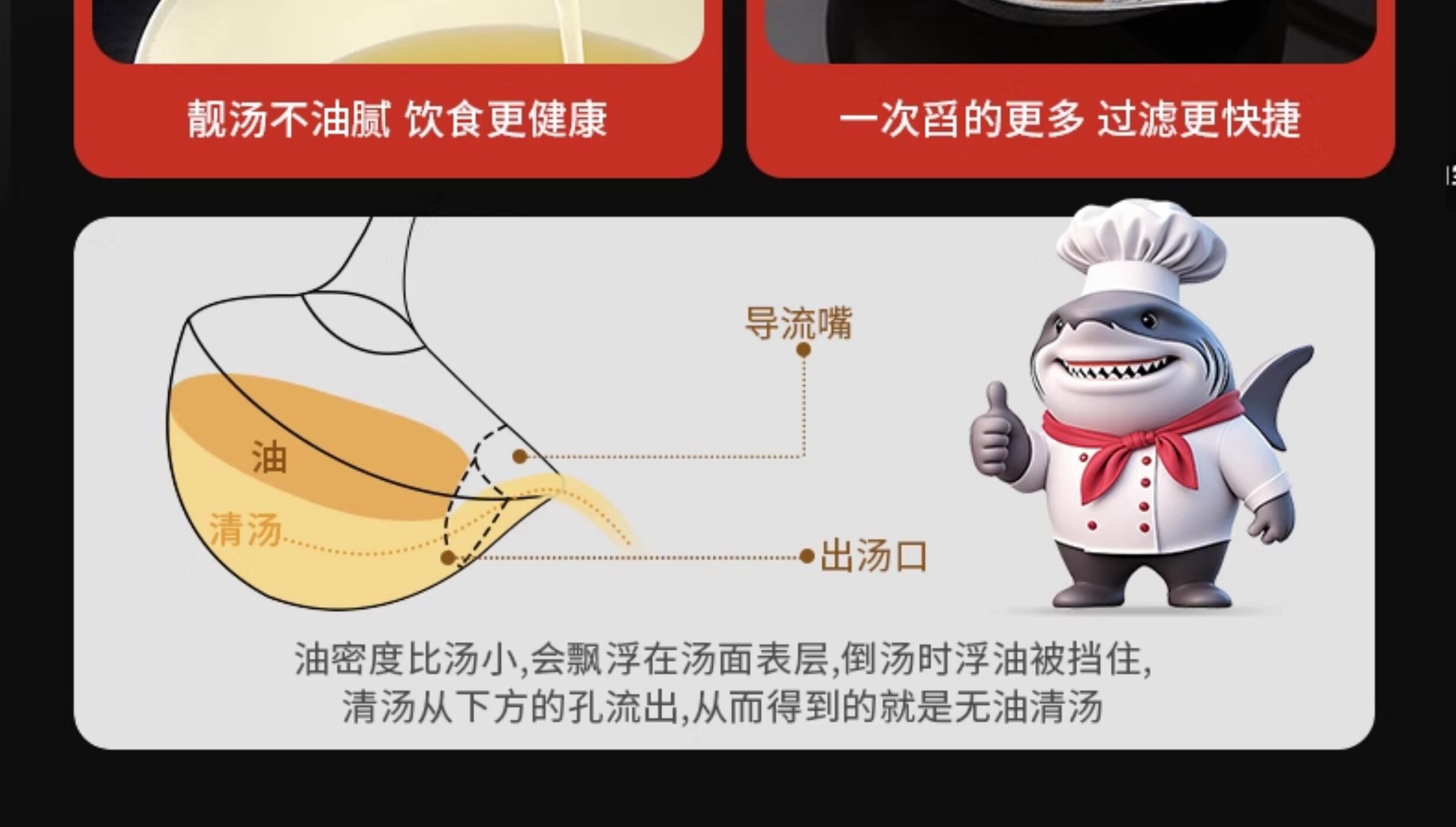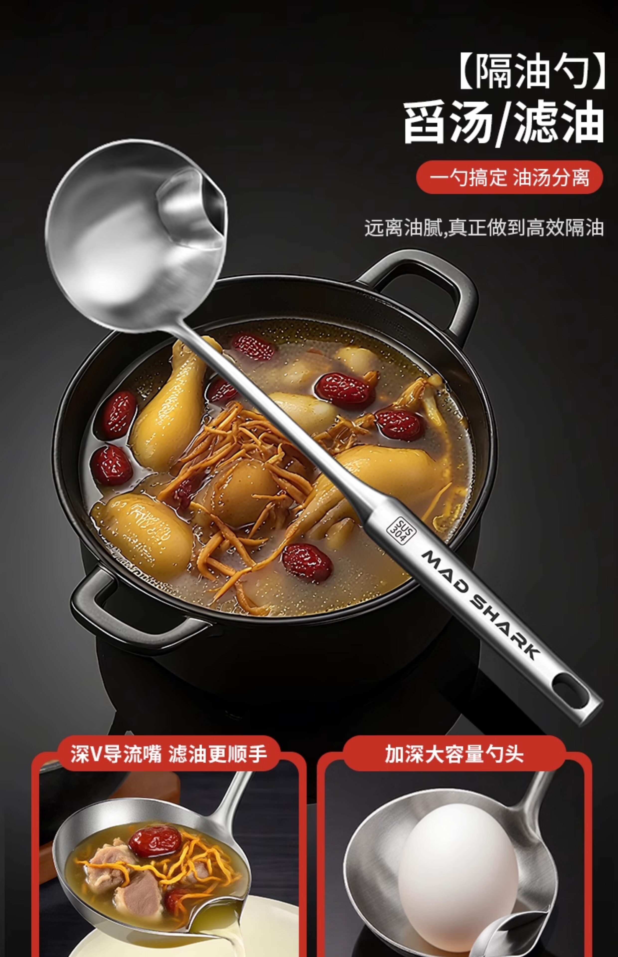 Crazy Shark 304 ложка для отделения масла из нержавеющей стали, большая суповая бытовая ложка с масляным фильтром, артефакт для отделения масляного супа для удаления масла
