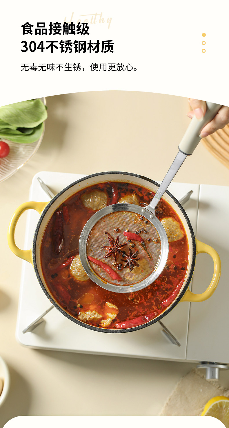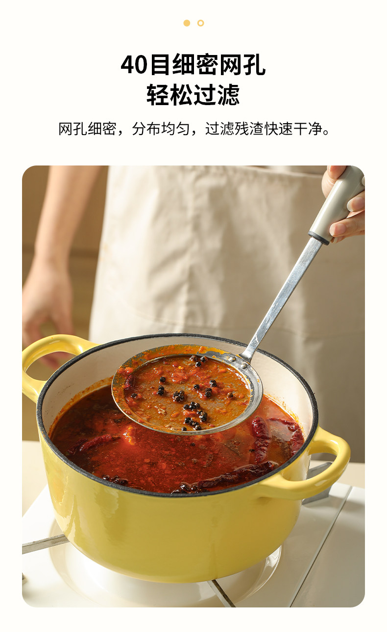 Королот, обращенный к турбоне семейный кухонный фильтр из нержавеющей стали сито горячее горшок Удалить лицо ложек с лицевой ложкой.