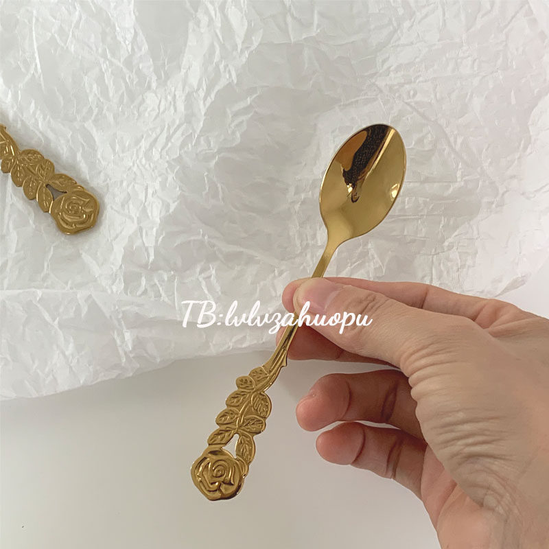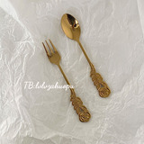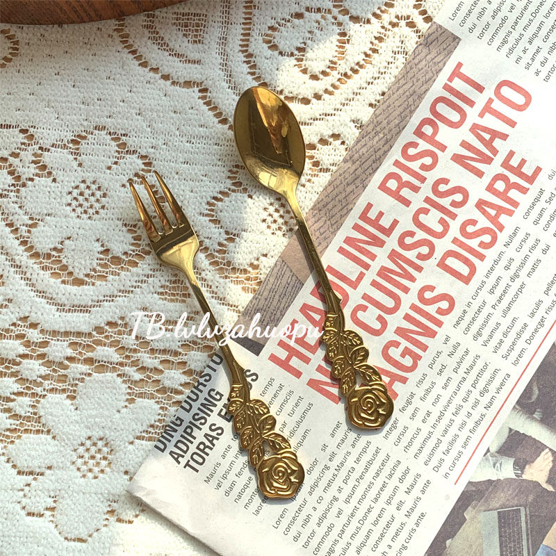 Ретро золотая розовая ложка вилка