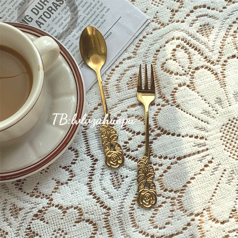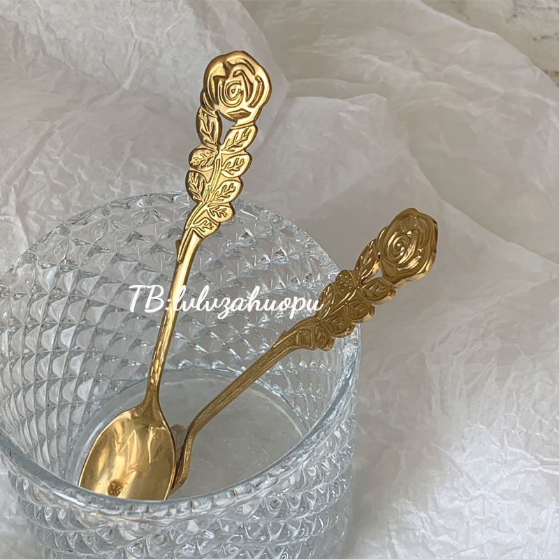 Ретро золотая десертная кофейная палочка для смешивания, вилка для фруктов, Южная Корея, розы