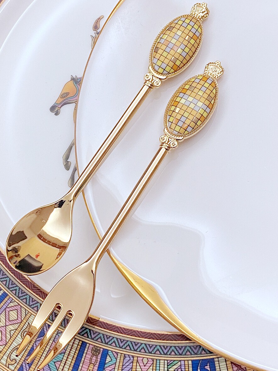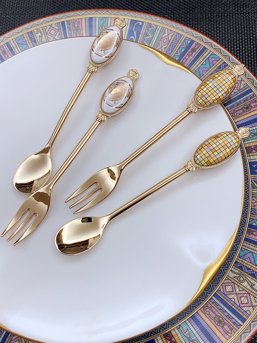 Золотая вилка для фруктов из нержавеющей стали для домашнего использования, изысканная десертная кофейная ложка, изысканный стиль