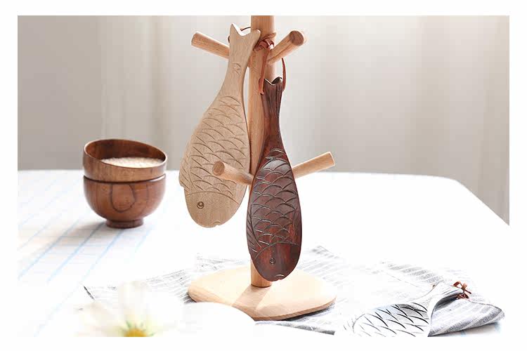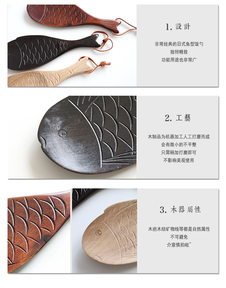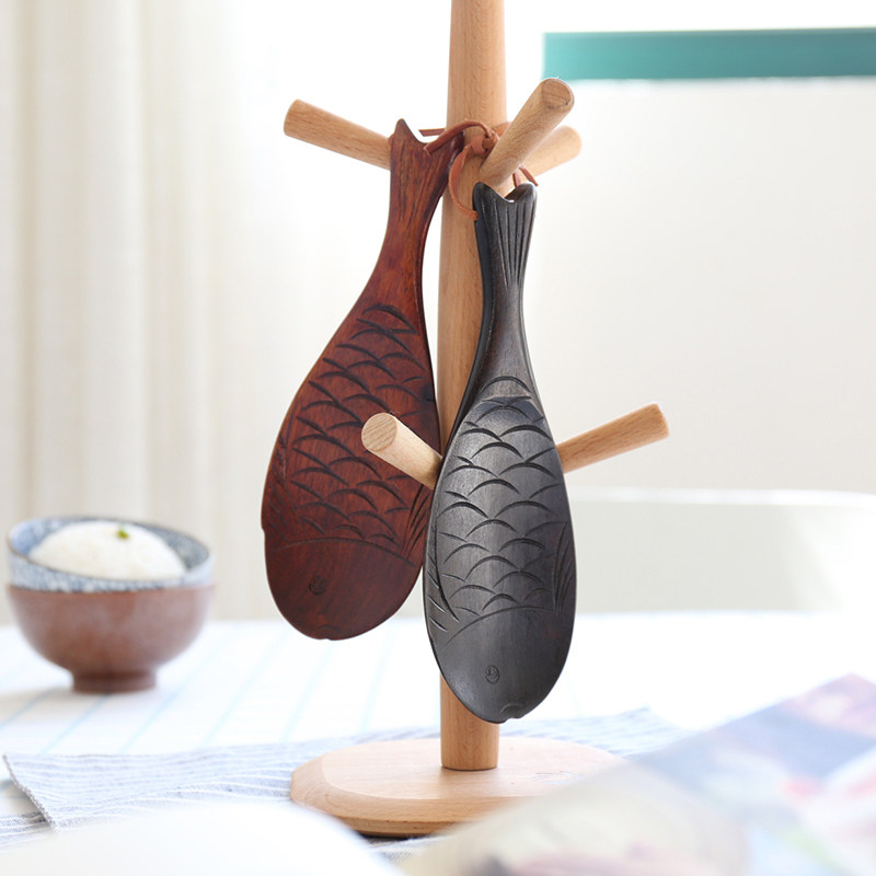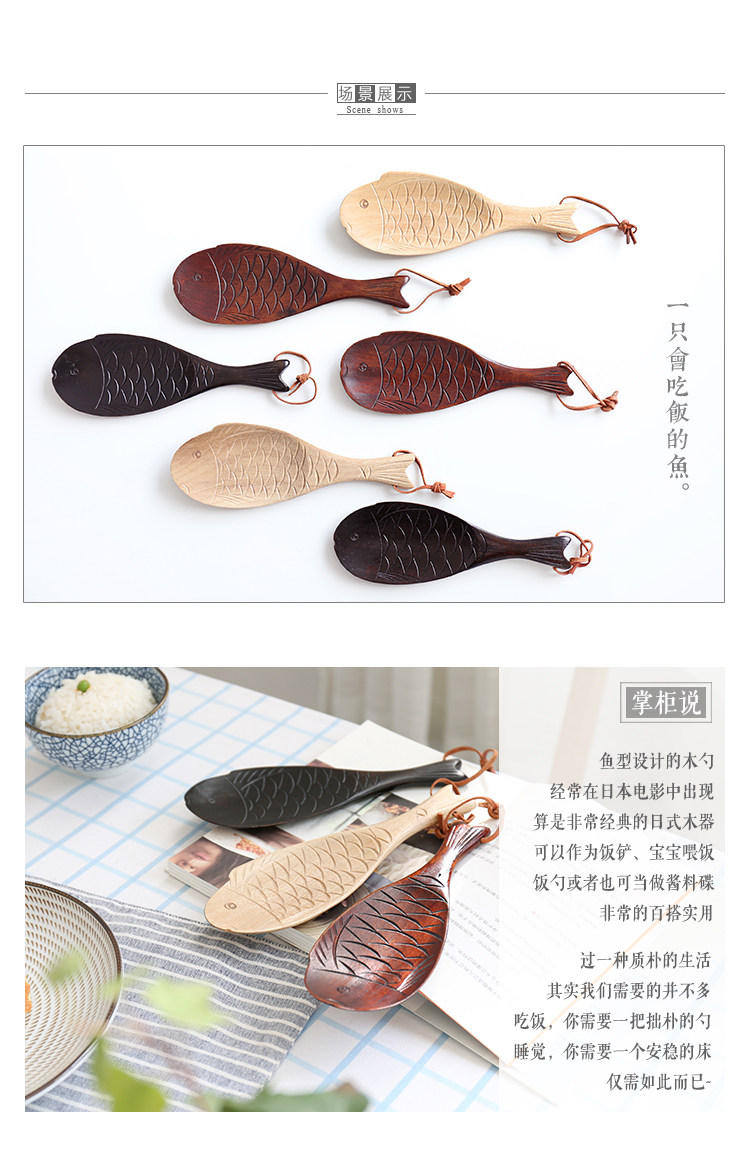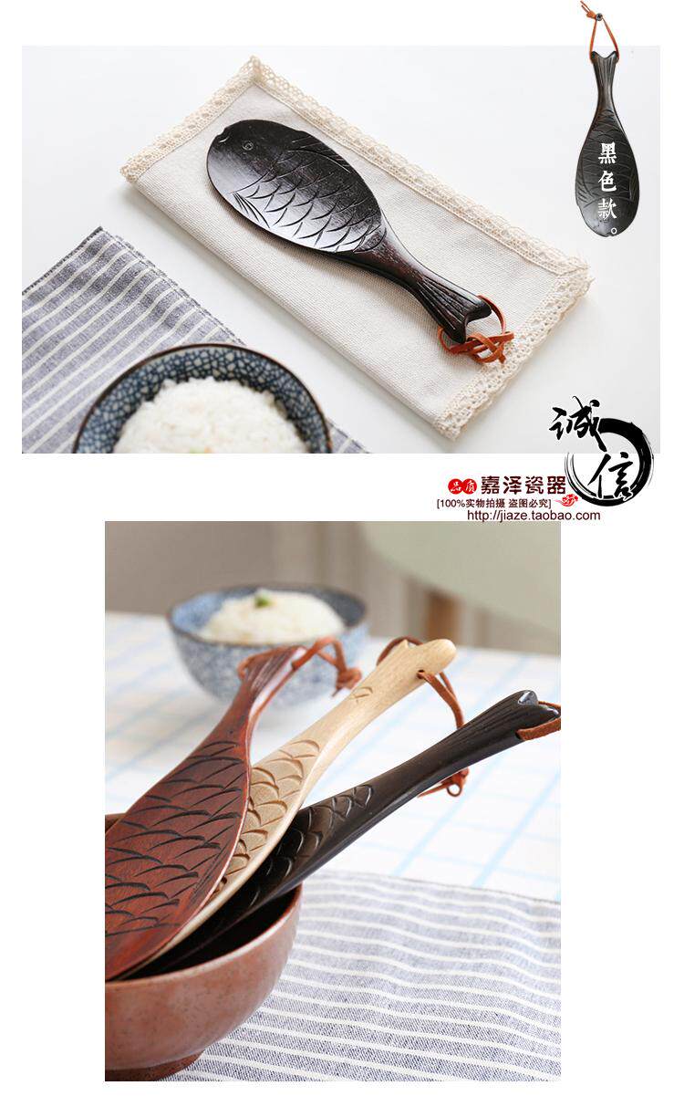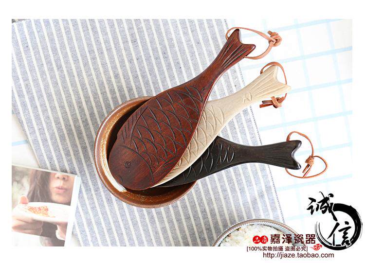 Японская в стиле творческая сплошная древесная рыба в форме рисовой ложки, электрический кастрюль, нежигальный горшок, высокая температура, высокотемпературная кухонная ложка ложки рисовой лопаты