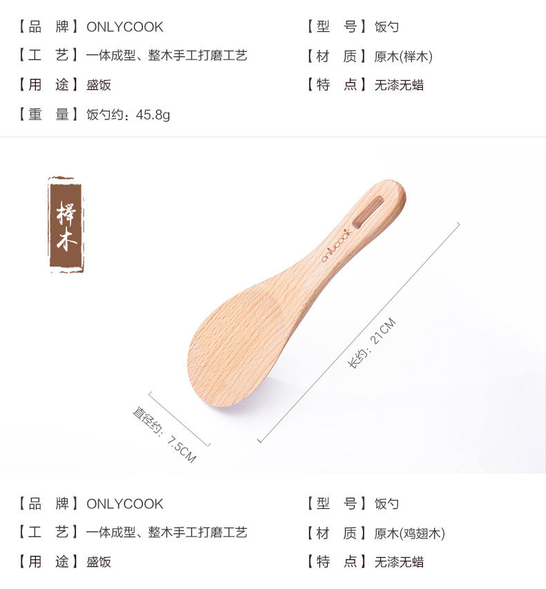 onlycook Деревянная рисовая ложка деревянная натуральная рисовая ложка, нежигальная кастрюль специальная рисовая лопата ложка ложки крикета рисовая ложка ложки ложки ложки ложки.