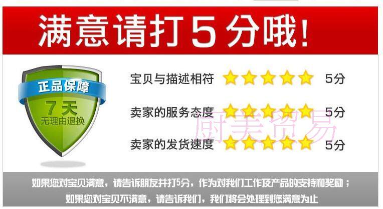 2. Чтобы лучше избежать ненужных проблем для каждого покупателя, наш магазин проверит всю упаковку продукта перед доставкой.Поэтому, пожалуйста, покупатели, пожалуйста, откройте проверку перед логистической компанией или сотрудниками Courier Company, прежде чем получить товары.Если товары повреждены, пожалуйста, поговорите лично с персоналом лично или лично свяжитесь с персоналом по обслуживанию клиентов нашей компании.Совместно вести переговоры с логистическими компаниями.Если вы не откроете инспекцию лично, вы подпишите его.Некоторые покупатели ущерба будут нести все убытки сами.Пожалуйста, покупатели, когда вы подписываете коллекциюСначала проверьте товар перед подписанием.Движение компании предназначено для интересов обеих сторон.Пожалуйста, простите меня, если вам неудобно!