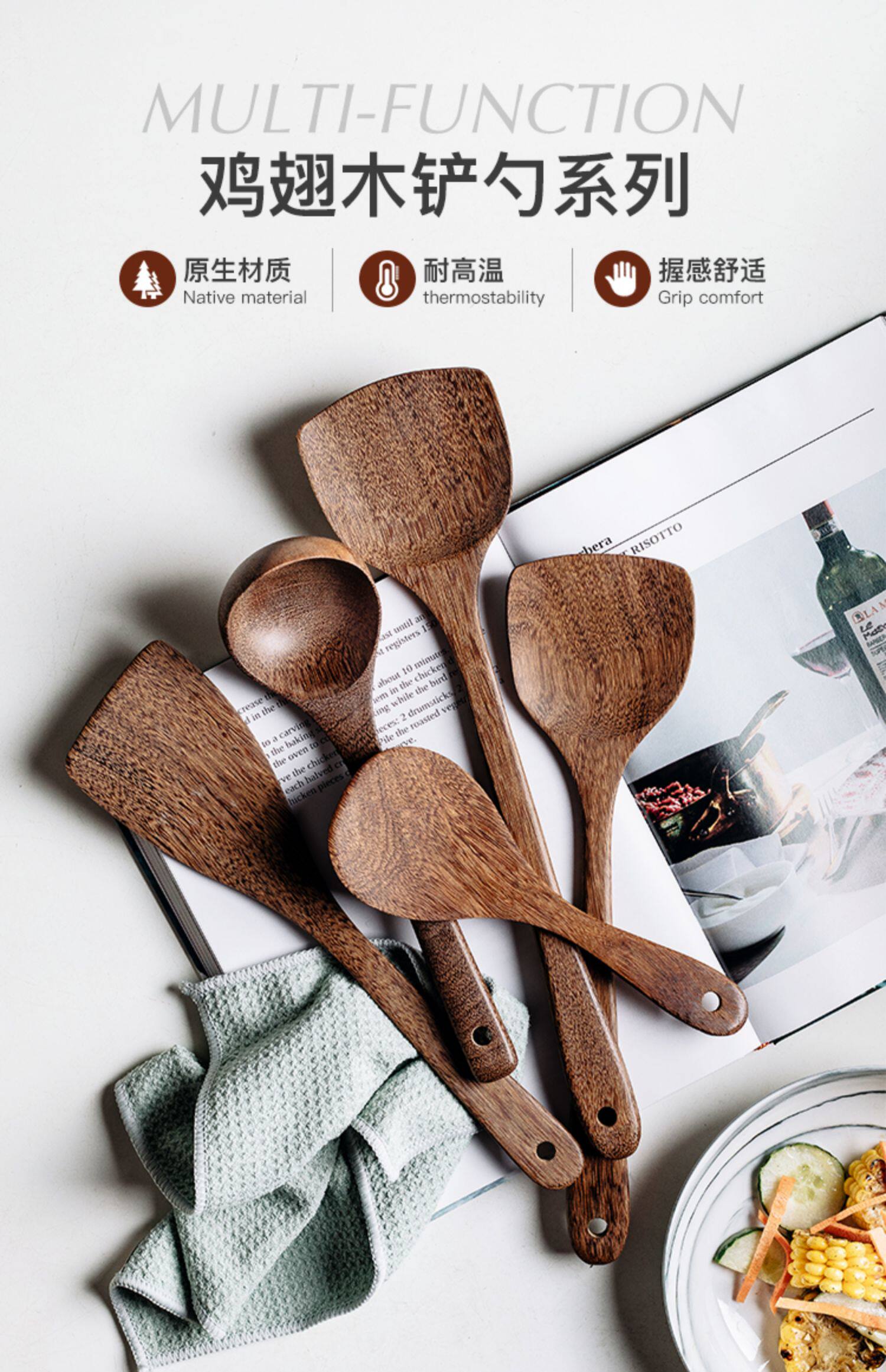 Куриные крылья деревянные кастрюли с жареным высоким температурным сопротивлением, антишибальный кухонный дом, не пожилой горшок с твердым деревянной лопатой ложкой ложки ложки ложки ложки ложки ложки ложки ложки ложки ложки ложки.