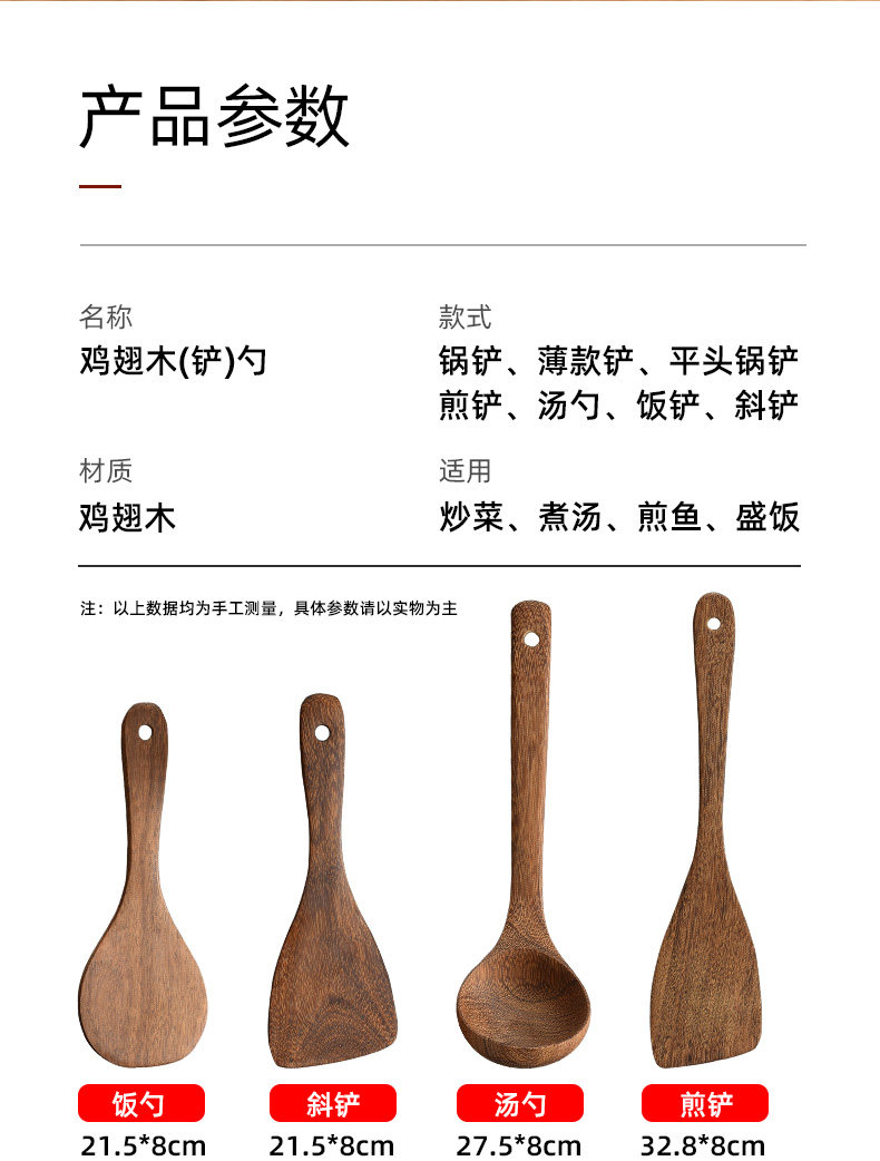 - [Высококачественное дерево куриного крыла · Рекомендуется] Без ущерба для длинных лопаточков с длинной ручкой+большая диагональная лопата только 21,9