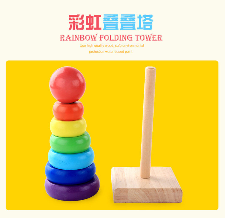 Деревянная разноцветная дженга для младенца, интеллектуальная игрушка, радужные колечки, раннее развитие