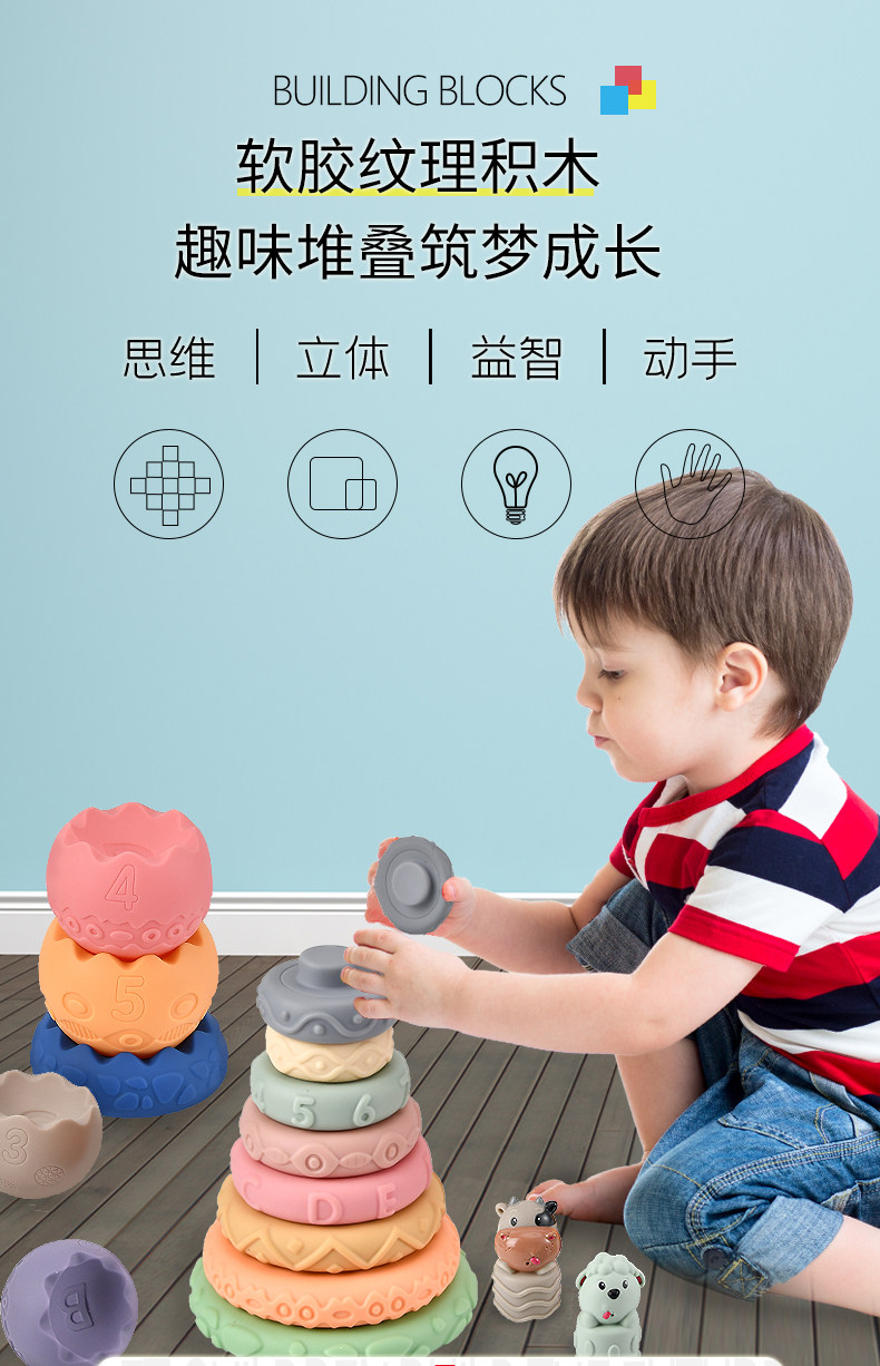 Дженга, башенка из мягкой резины для младенца, игрушка, 1 лет, можно грызть, раннее развитие