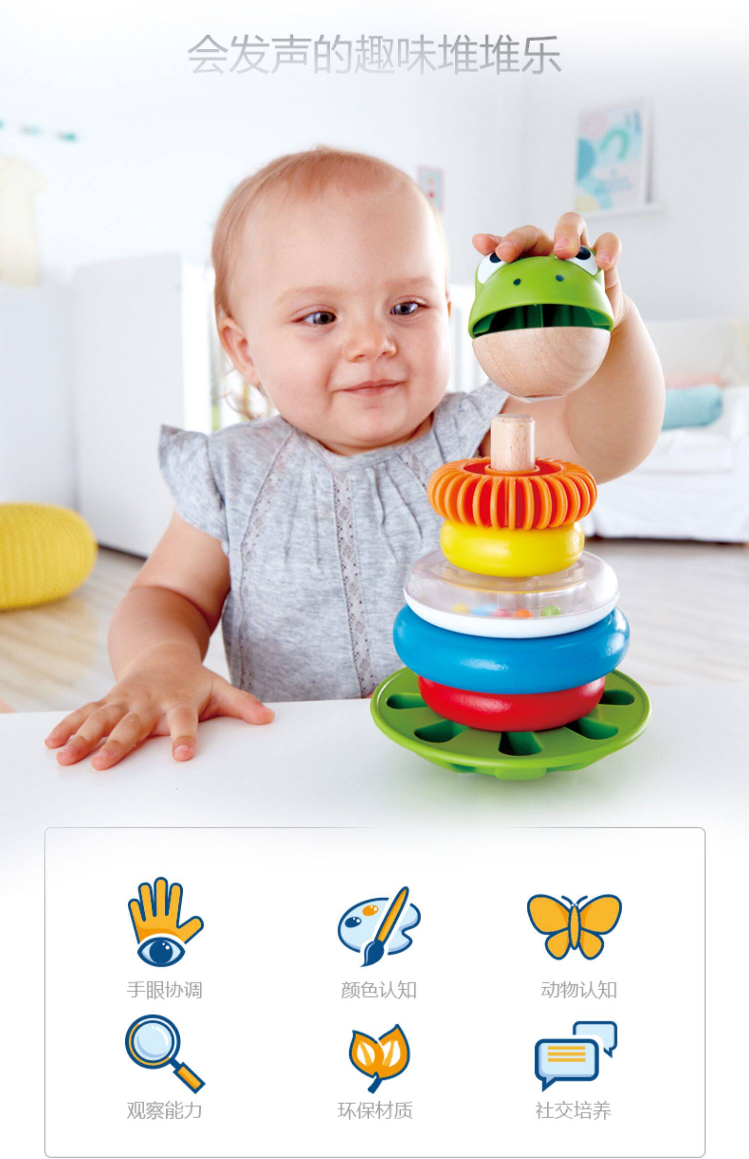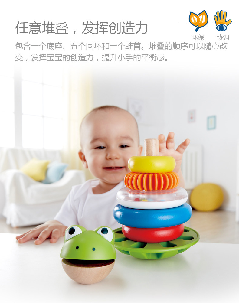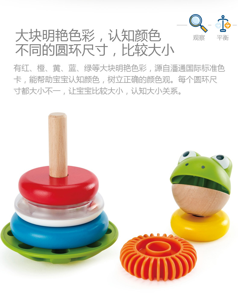 Hape Кольцо, радужные колечки, детская интеллектуальная дженга, игрушка, лягушка, 1 лет