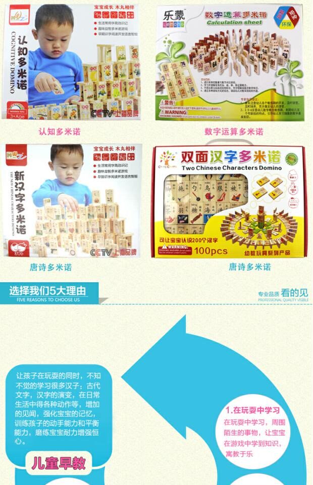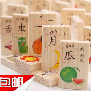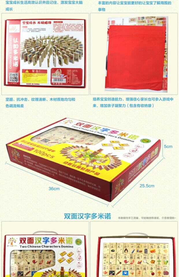 Обучающее домино, деревянная интеллектуальная игрушка, конструктор, 100 штук, китайские иероглифы, грамотность