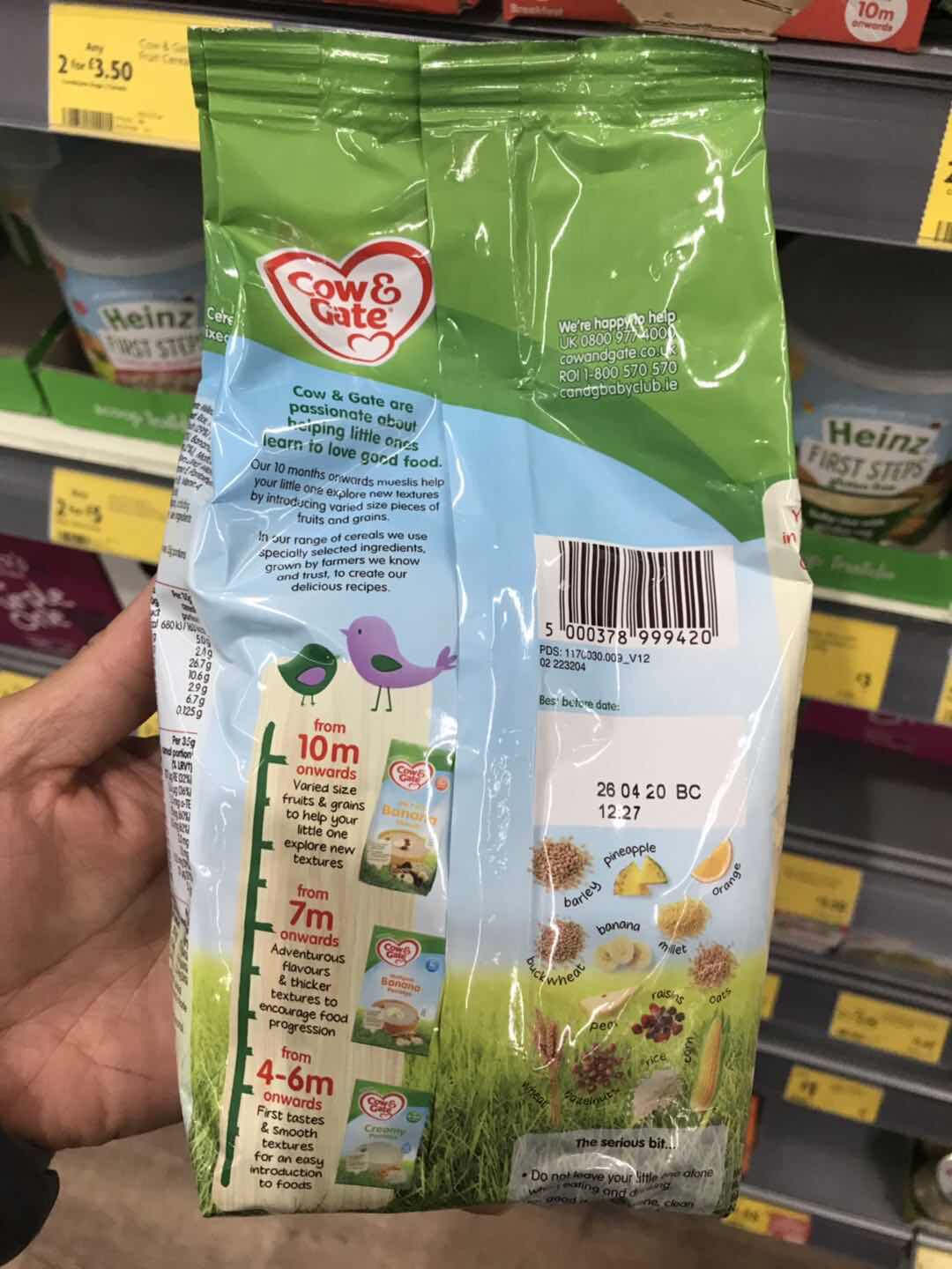 Британский говяжий барьер за более чем 10 месяцев овсяной камеры рисовой пасты, банановой мультигрен, 330 г.