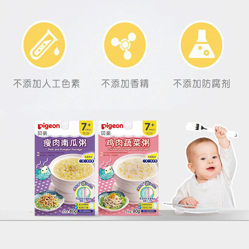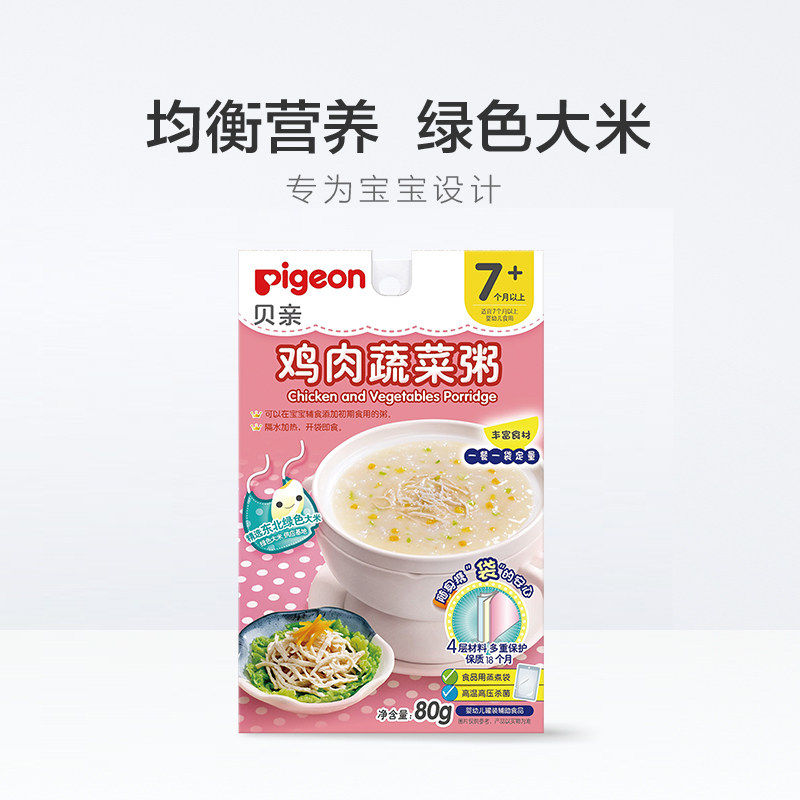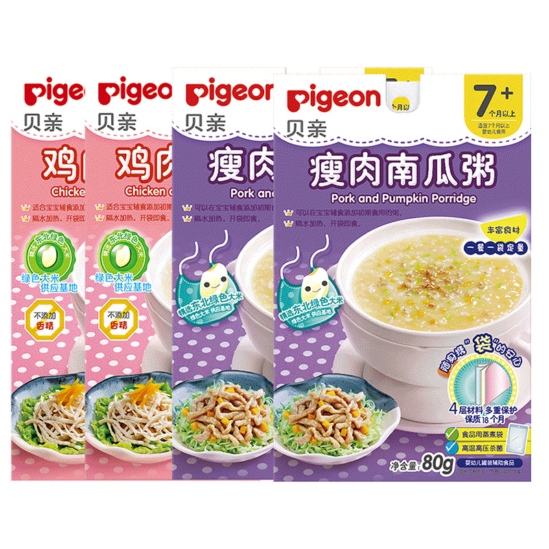Pigeon/贝亲 Цыпленок и овощи, тыквенная тыква, Дополнительная пищевая каша, рисовая паста, 80 г*4 мешки для портативного отопления воды