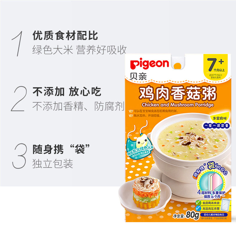 Pigeon/贝亲 Куриные шиитаке грибы лосося картофель детское питание Дополнительная пищевая каша 320G Портативное отопление воды