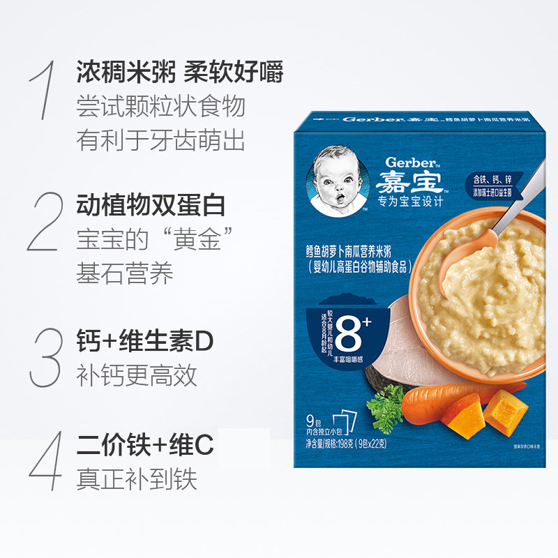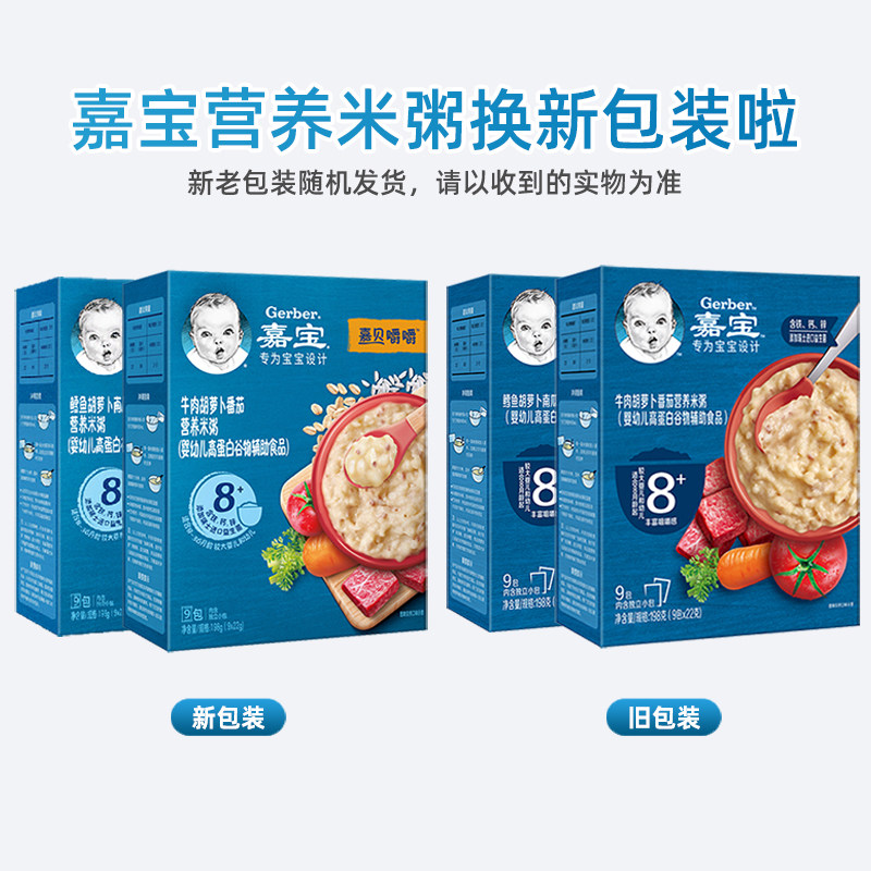 Garbao Nutrition Rice Congee говядина+треска Carto Baby Baby Supply Eat Eater 198g*2 коробки августа август
