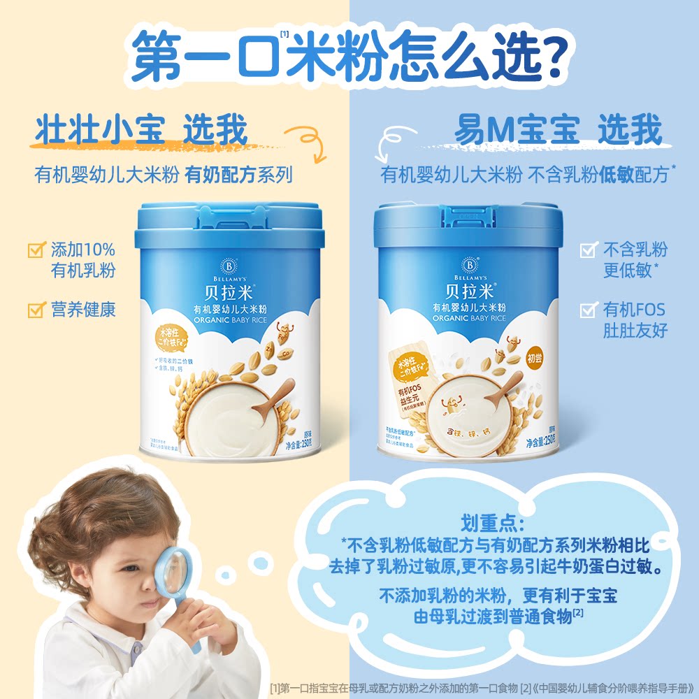 Органическое детское питание Mengniu Bellamy, рисовая мука/паста для младенцев, оригинальный вкус, содержащий 10% сухого молока, 250 г * 1 банка