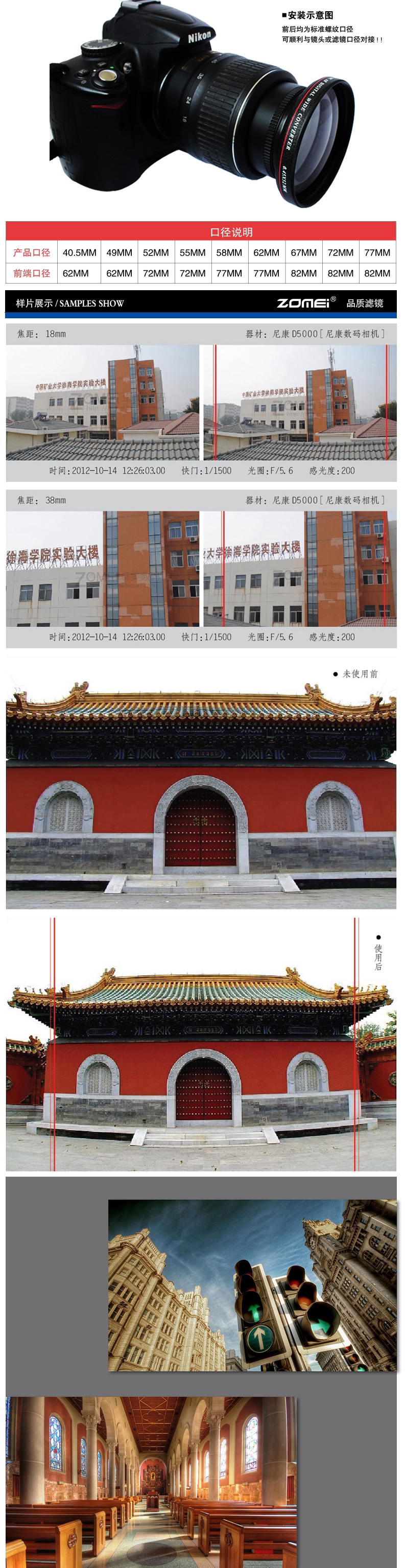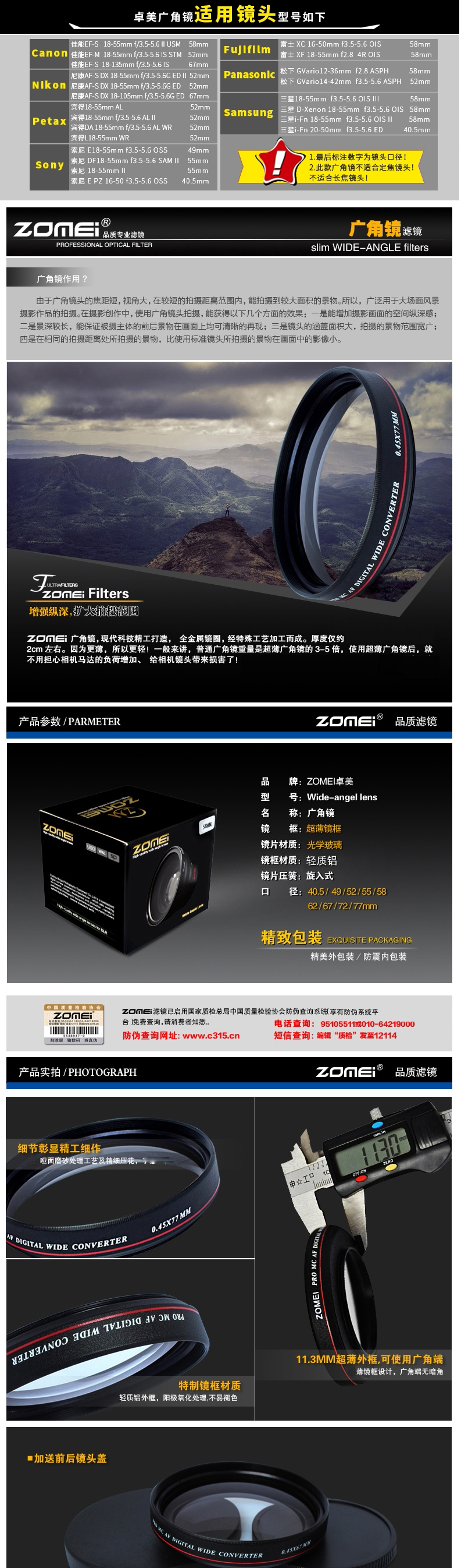 Zomei Zhuomei 55 мм сверхтонкое широкоугольное зеркало 0,45-кратное широкоугольное дополнительный объектив, подходящий для A580 18-55