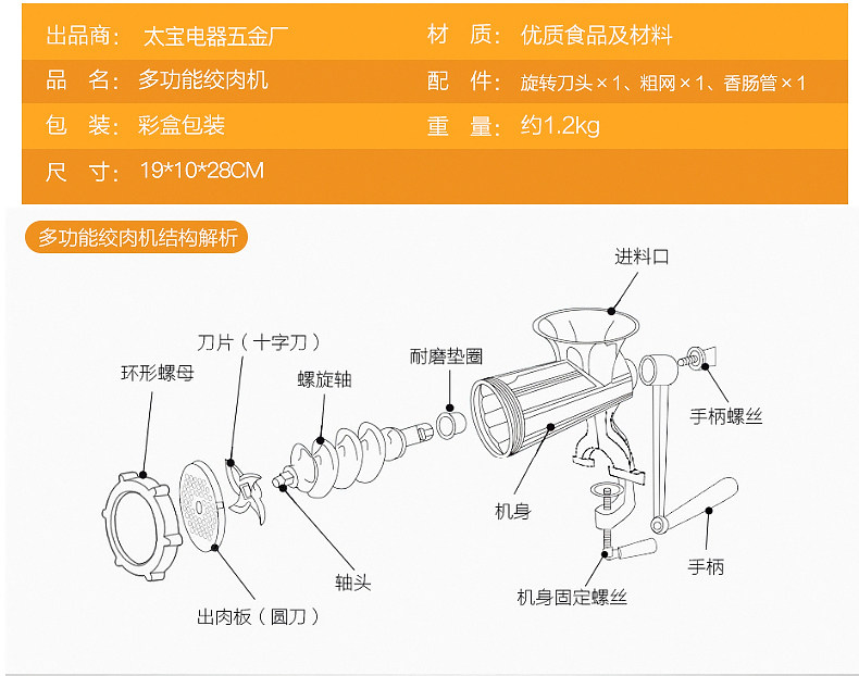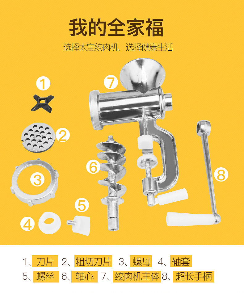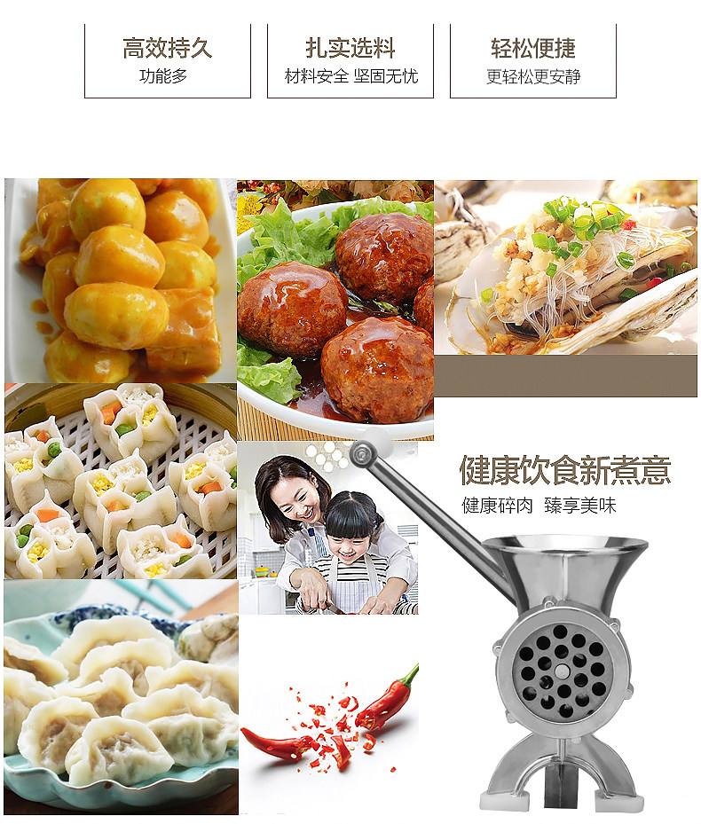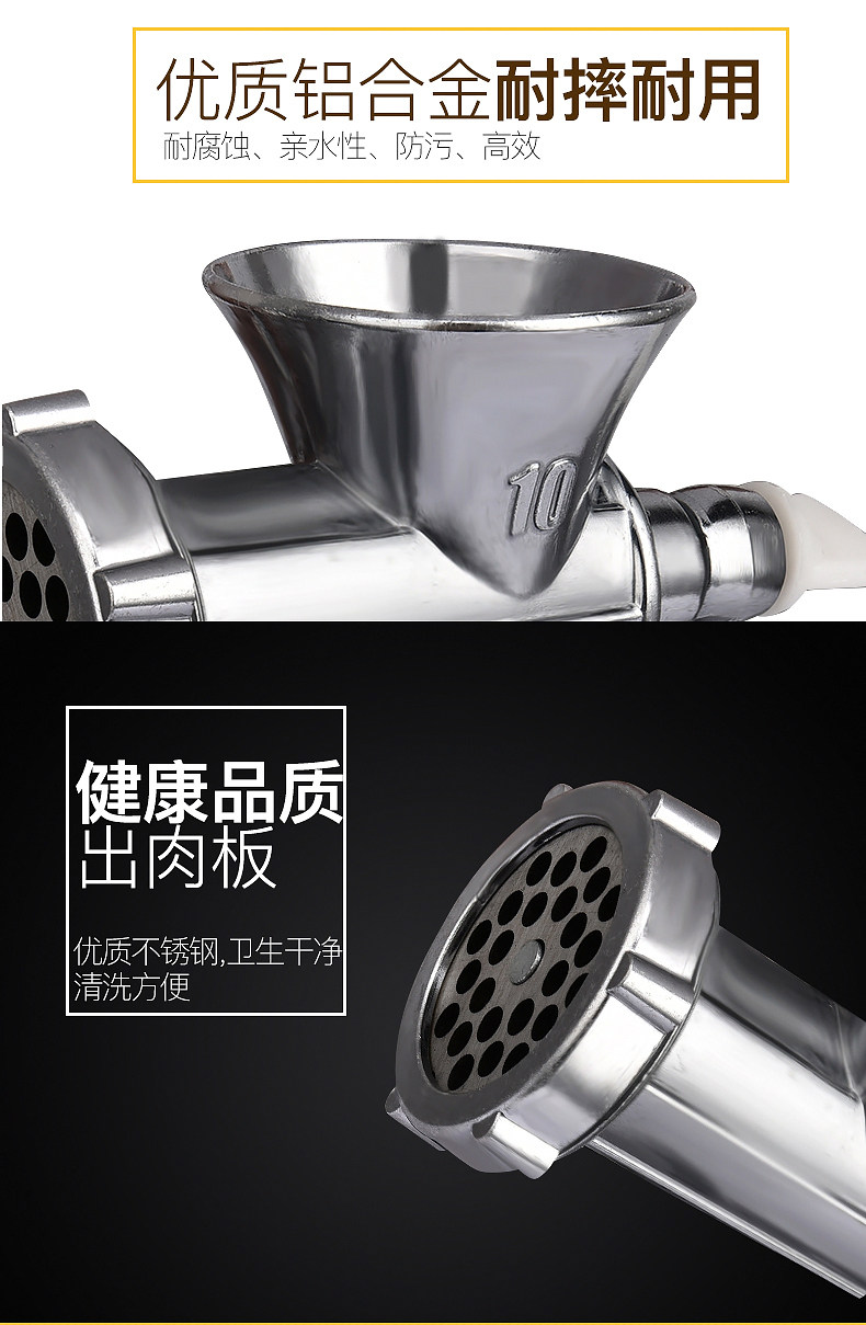 Примечание. Этот продукт представляет собой поверхность алюминиевого сплава, которую нельзя отдать и гладко Недоставление из нержавеющей стали -это острый нож для мартенсированного стали (с магнитным). Функциональное слово в скобках - это шлифование мяса клизма Украсить функцию шлифования поверхности.Шлифовальная голова - это литая сталь.Руководство - это общее руководство.1. Впервые вы должны запуститься. Вы можете использовать морковь, овощи, тесто, поместить их в машину, несколько раз скручивать взад -вперед, очистить внутренние примеси внутри машины, а затем очистите его мощным теплая вода.Таким образом, не будет черного мяса.2. В конце мясо нужно поместить в зеленый лук, чтобы продолжить скручивать, чтобы скрутить оставшееся мясо, потому что мясо может двигаться вперед, толкая мясо.Рекомендуется, чтобы бобовая свинина, говядина с мышцами, не была легко пристегнуть, и повернуть ее дважды. чтобы не допустить ржавчины ножа.4. Используйте небольшое количество съедобного масла, чтобы добавить небольшое количество съедобного масла между осью и пластиковыми чехлами, чтобы его легче скрутить.