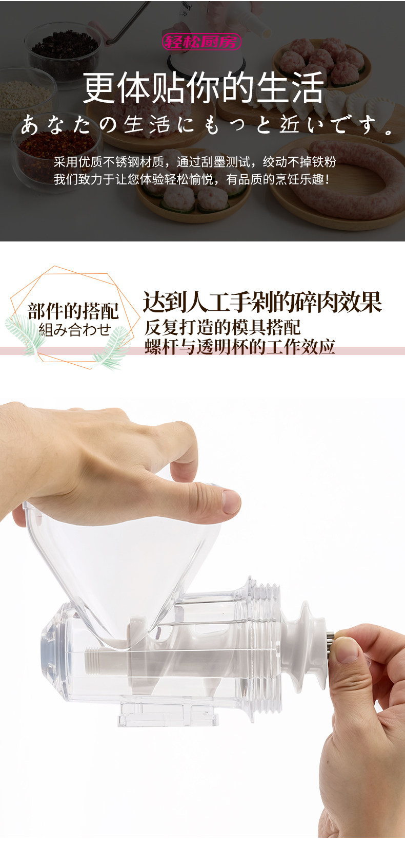 轻松厨房 Вручную сбивает с толку черновой артефакт мясо из машины для шлифования домашней рукой многофункциональный мясной миксер, чтобы разбить начинку