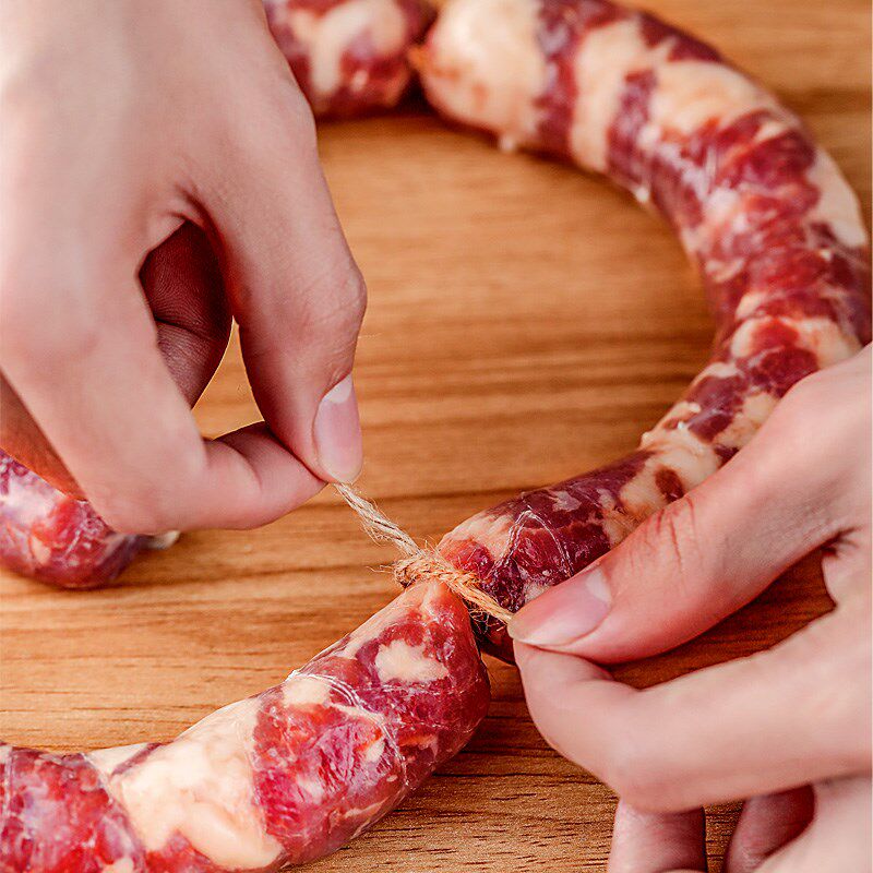 Половка колбаса самостоятельно приготовлена домашняя ручная ручная колбаса на гриле на гриле -колбасу. Производство