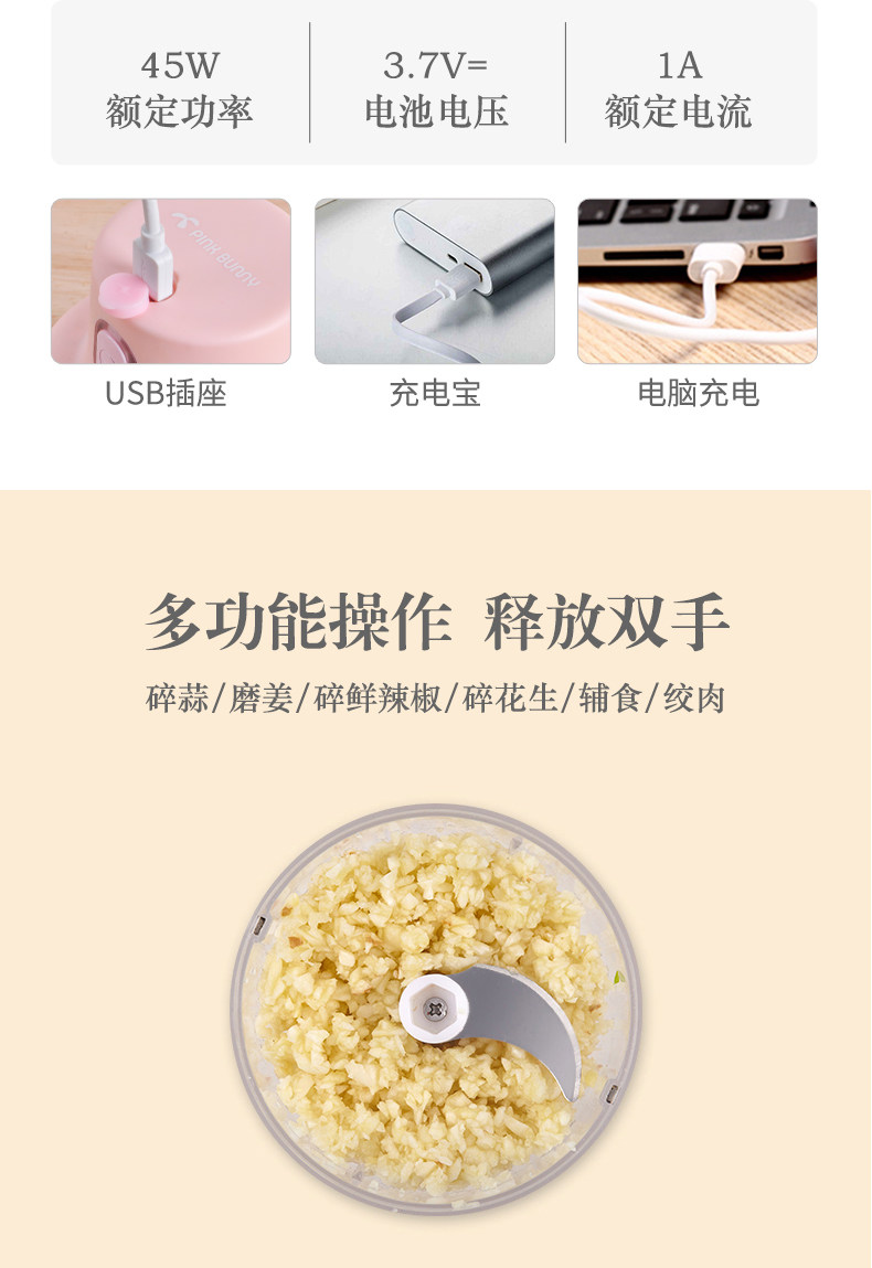 Банни Кролик Электрический беспроводной мини -гидрированный чесночный чеснок