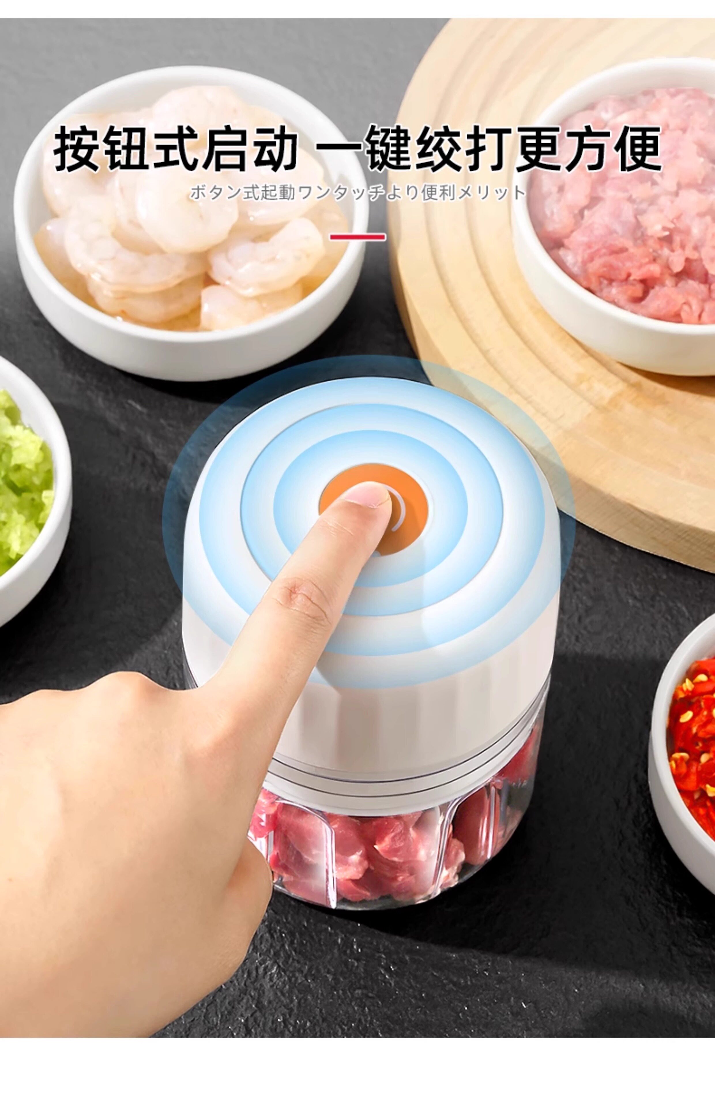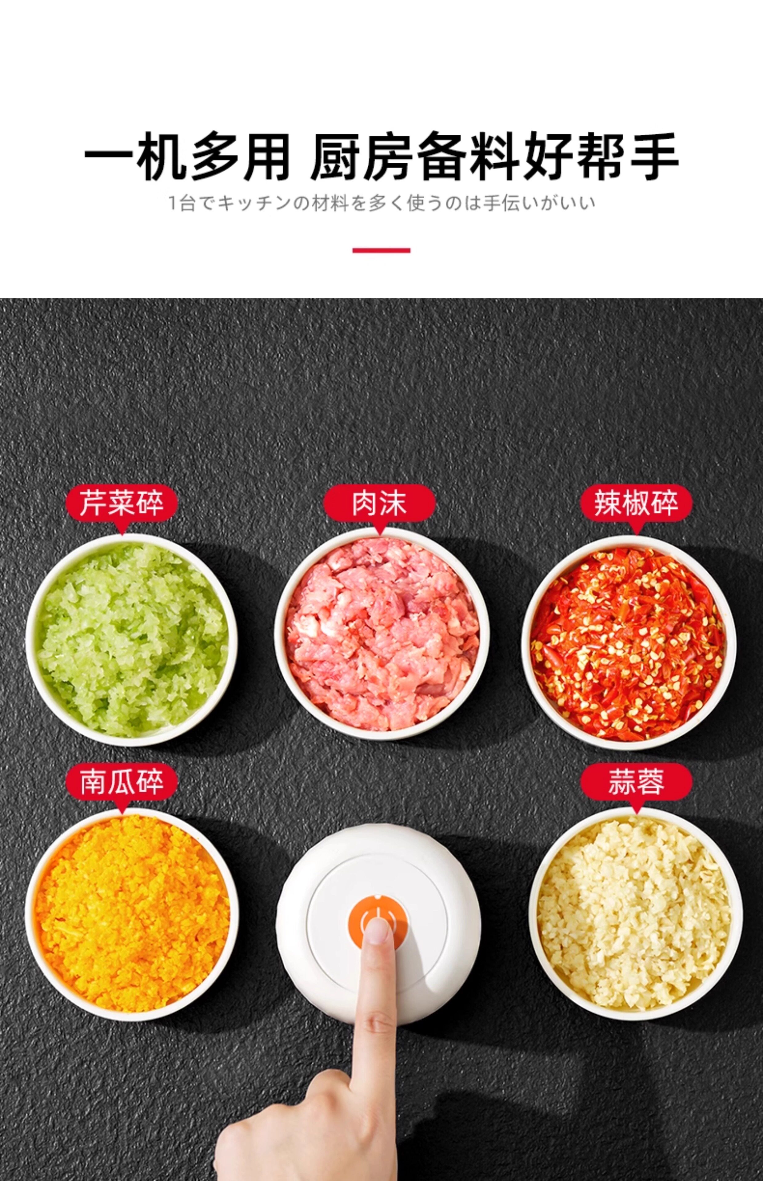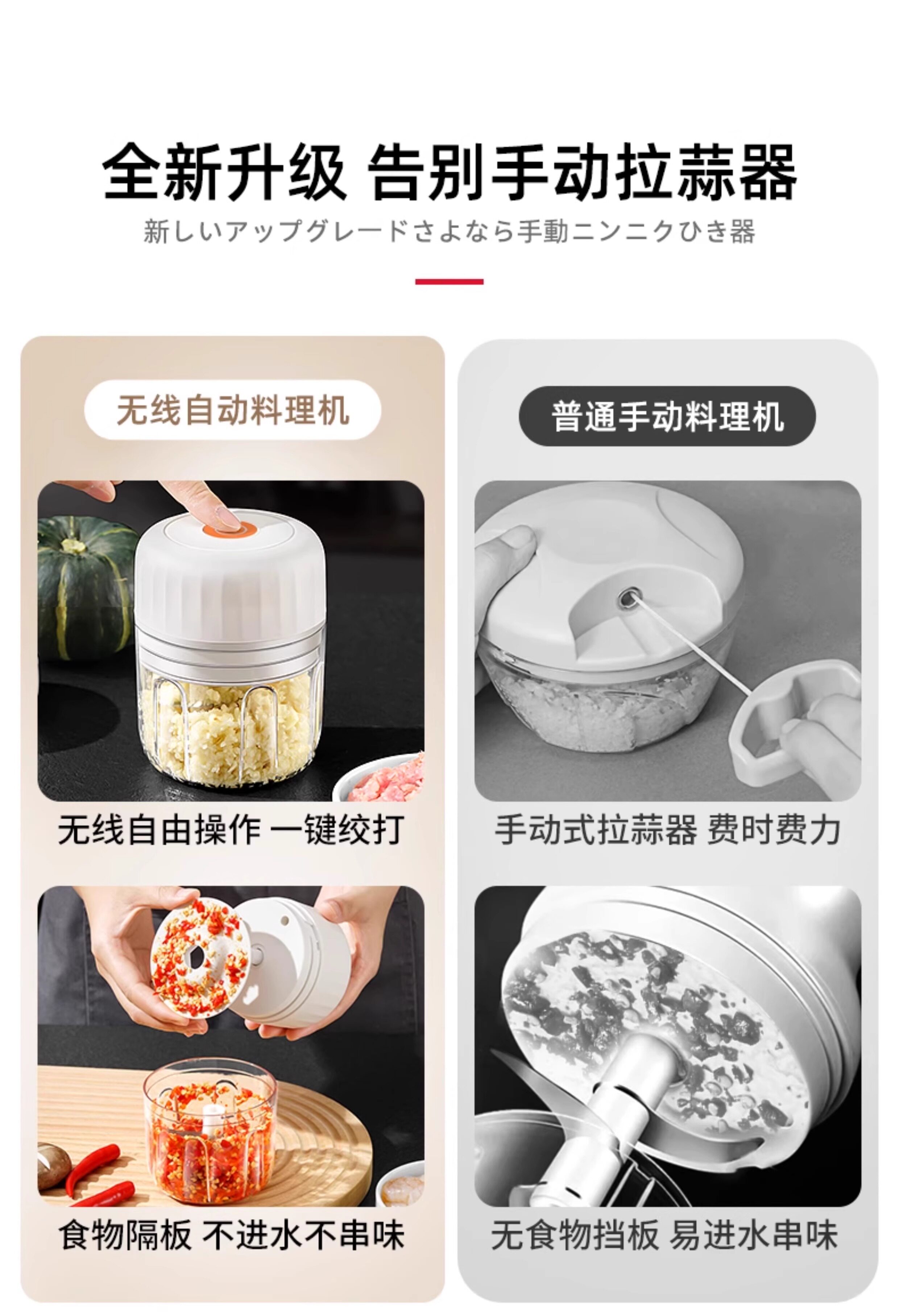 Японская мясорубчатая мельница Электрическая дом Использование 2025 Новое беспроводное электрическое измельченное мясо, чеснок, имбирь, чили, чеснок, овощи