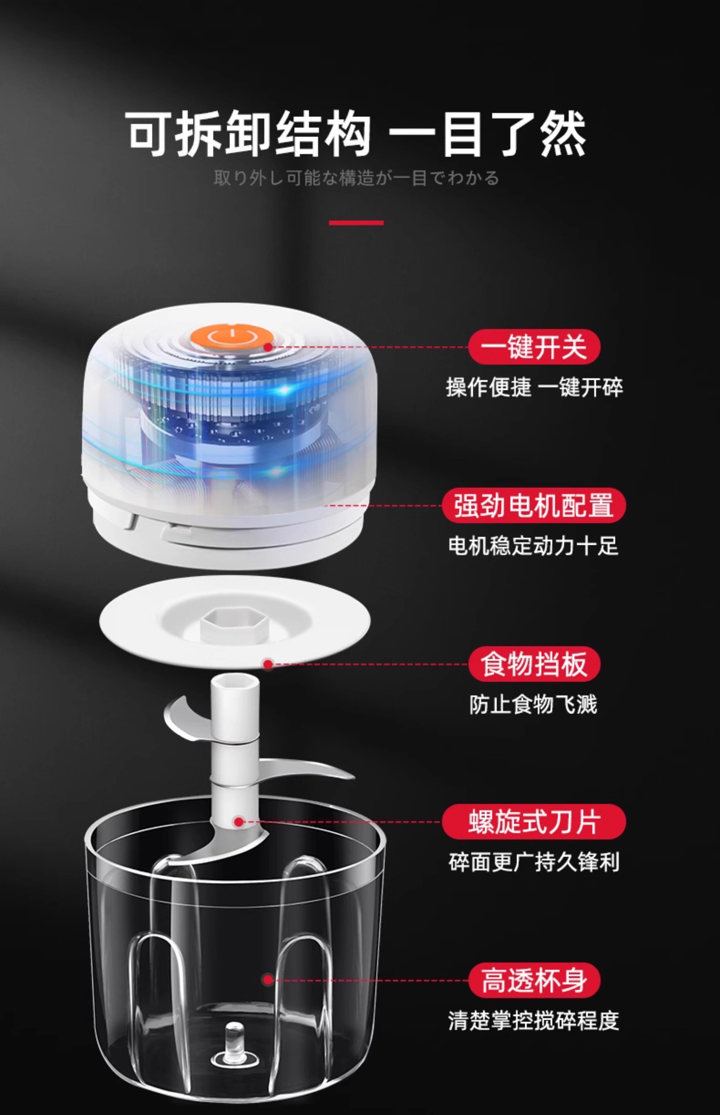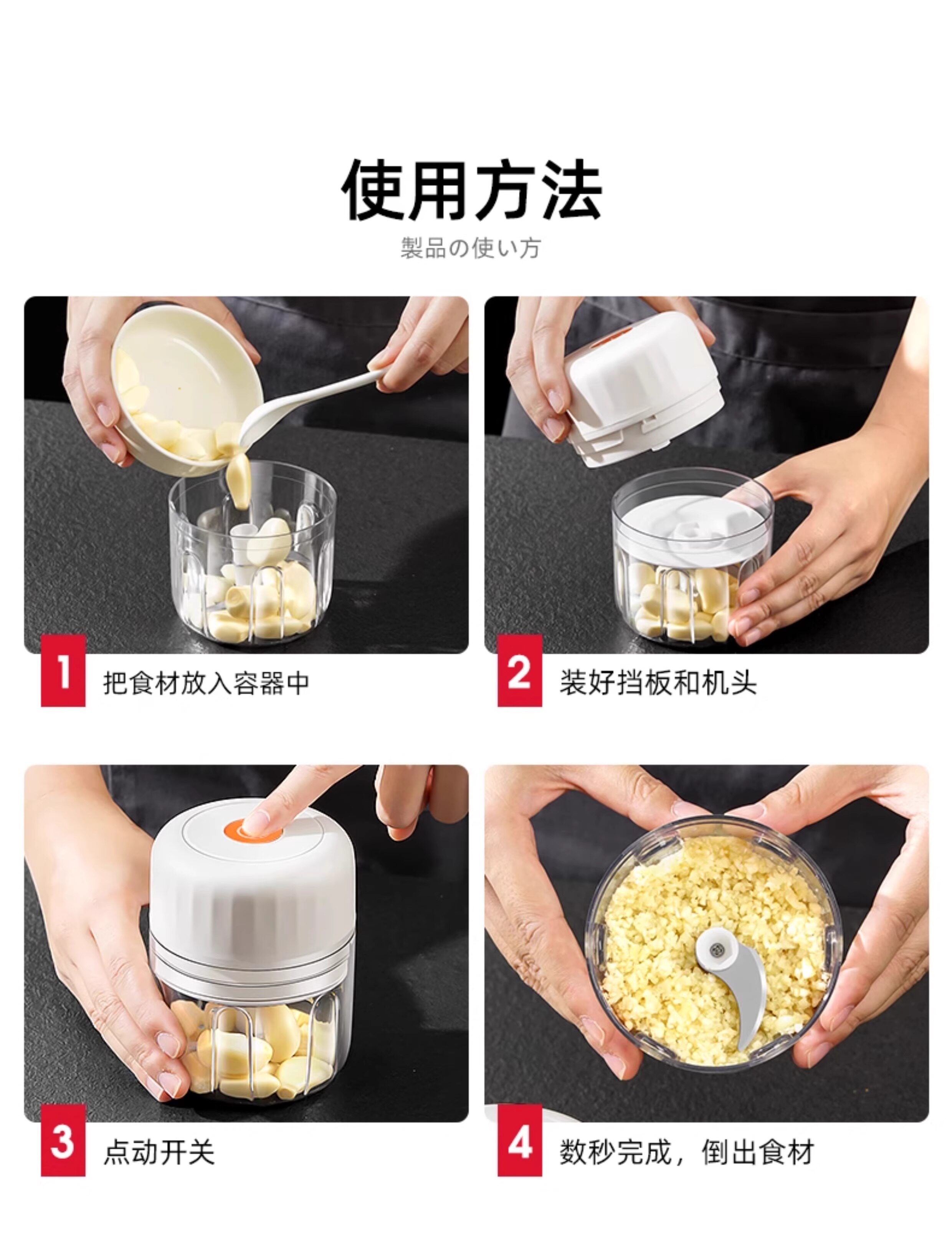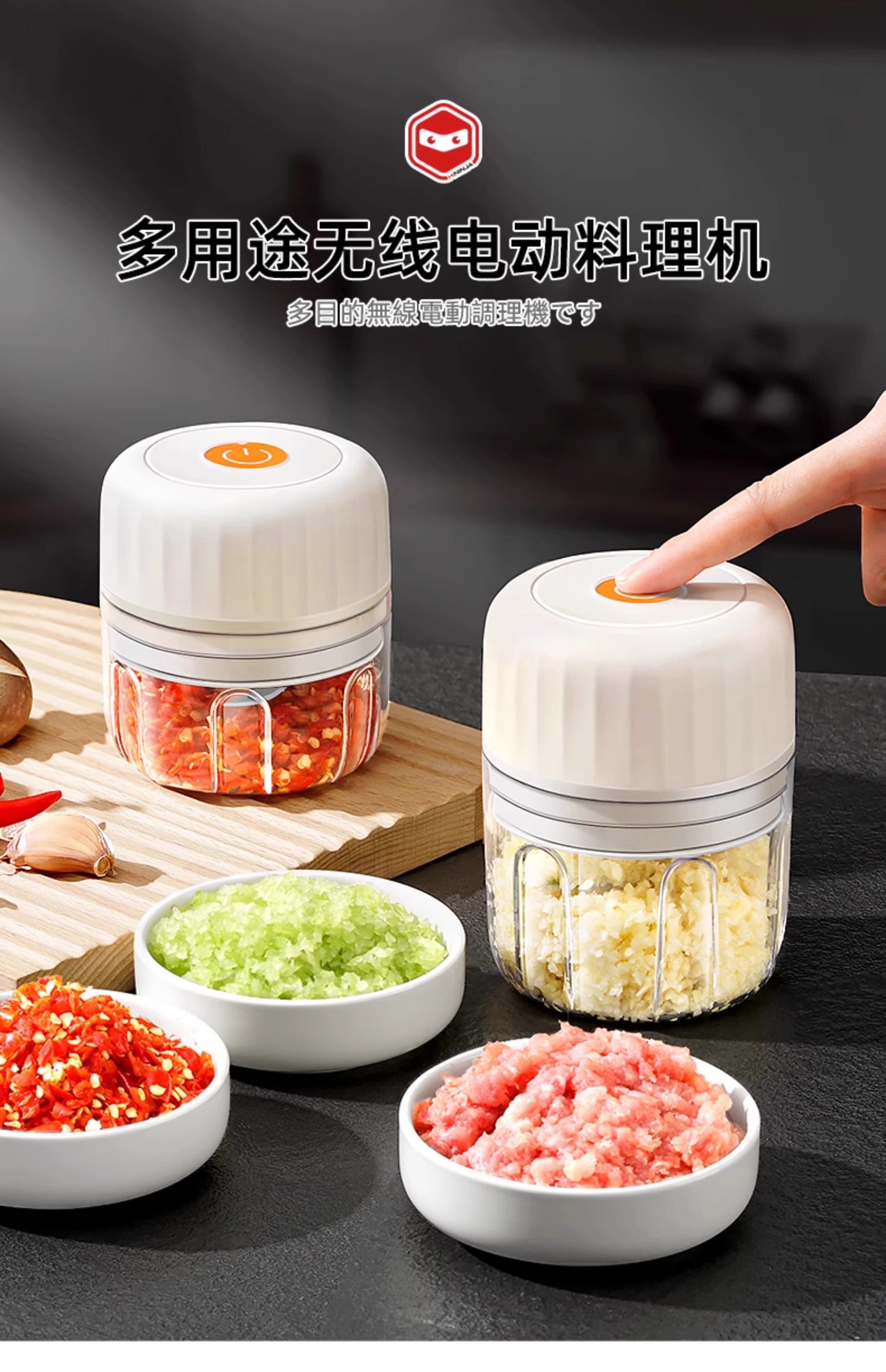 Японская мясорубчатая мельница Электрическая дом Использование 2025 Новое беспроводное электрическое измельченное мясо, чеснок, имбирь, чили, чеснок, овощи