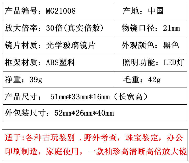 Лупа, портативное ювелирное украшение, увеличение в 30 раз