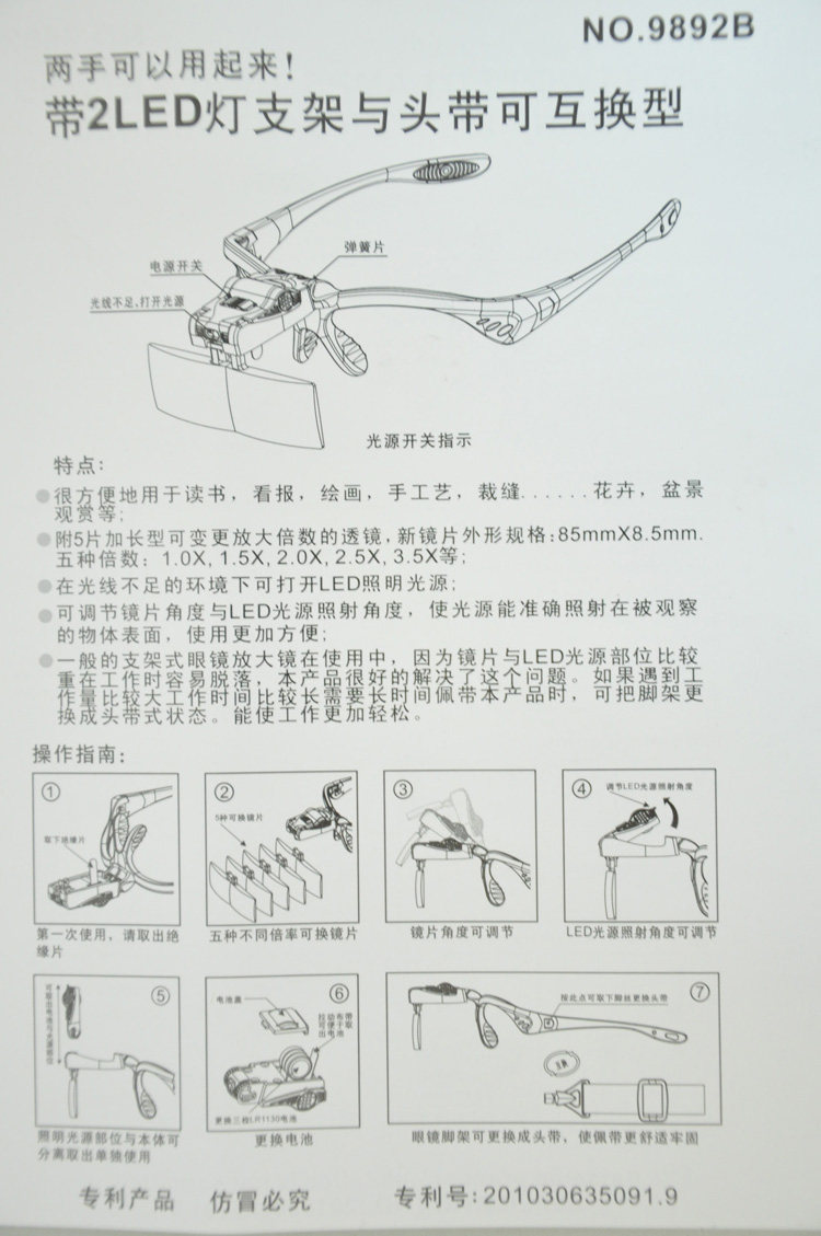 Наименование товара: 2 -й лампы кронштейны и повязки могут быть заменены очками увеличительные очки