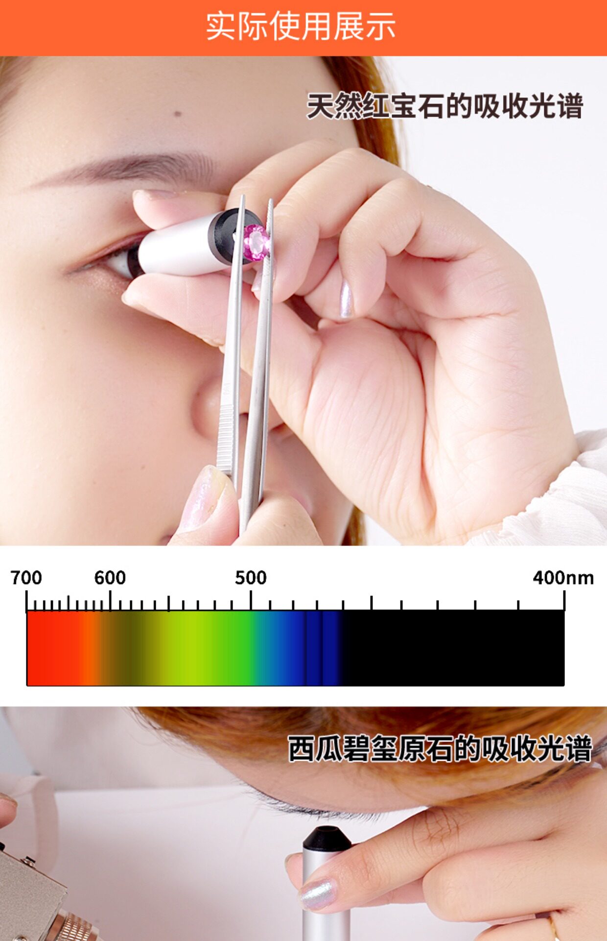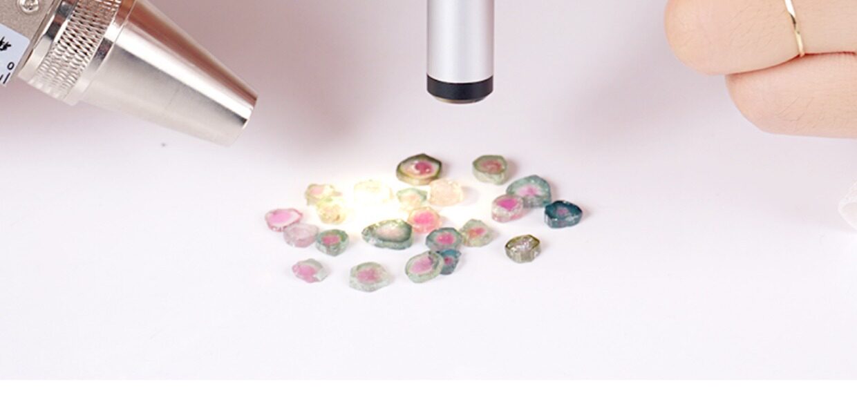 Гравийная галерея навыки зеркало ювелирные украшения Оценка Изумрудные нефритовые жемчужины Tourmaline Spectromer