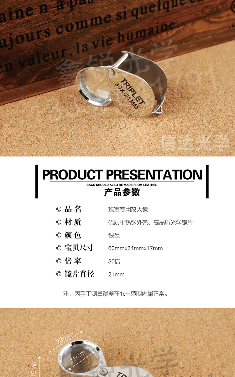 Складное ювелирное украшение, лупа, увеличение в 30 раз, 30x, 21mm