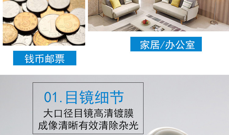 Микроскоп, лупа, лампа, монеты со шкалой, увеличение в 100 раз