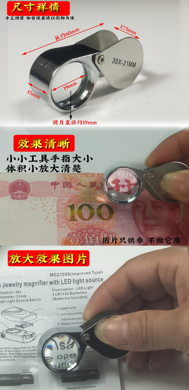 Маленькая простая лупа, увеличение в 30 раз