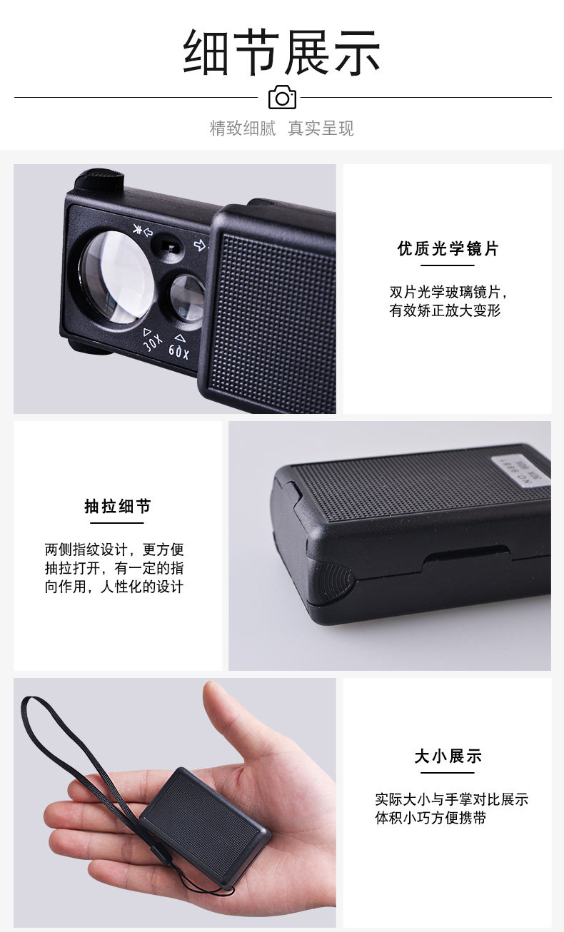 致旗 Портативная лупа, ювелирное украшение, марки из нефрита, монеты, портативный маленький микроскоп, увеличение в 30 раз