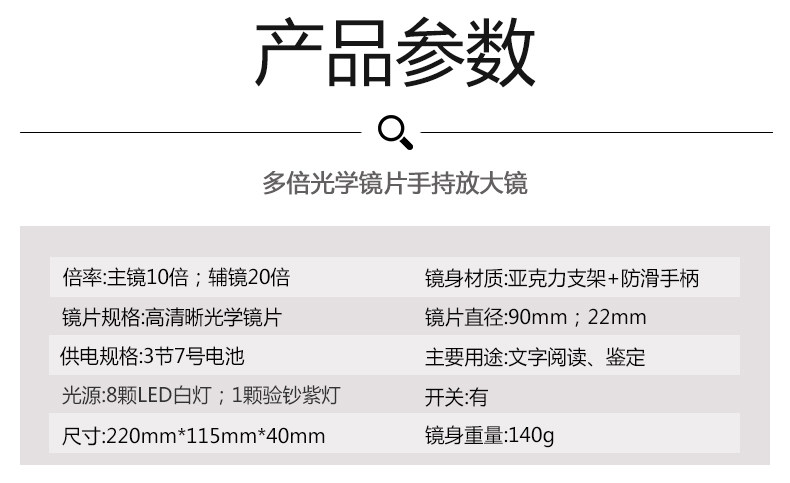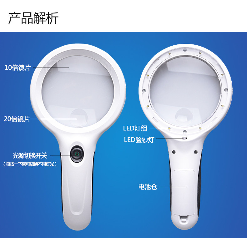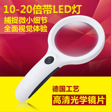 Портативная лупа с подсветкой, чтение для школьников и студентов, оптика, увеличение в 20 раз, увеличение в 10 раз