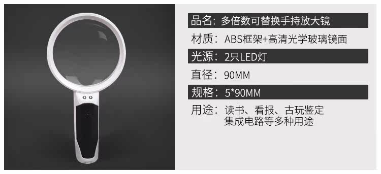 Портативное чтение для пожилых людей, лупа с подсветкой, ювелирное украшение из нефрита, новая коллекция, 90mm, увеличение в 5 раз