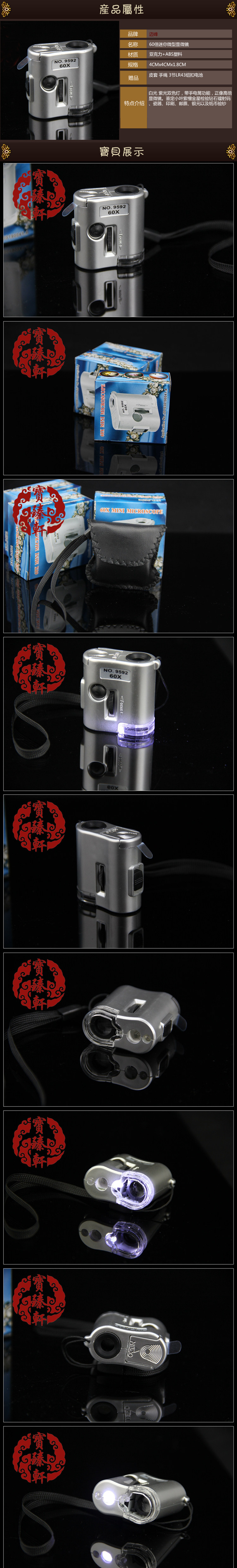 Портативный микроскоп с подсветкой, лупа, антикварное ювелирное украшение из розового дерева, увеличение в 60 раз