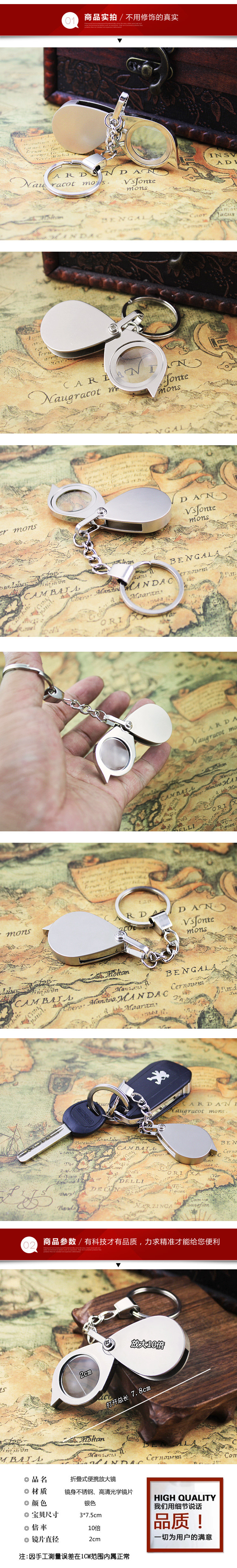 Портативный цельнометаллический складной брелок с ключом, лупа, 30mm, делается под заказ, с печатью вашего логотипа