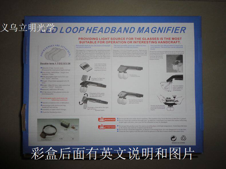 Упаковка:Коробка из четырех кусочков объектива, две батареи 7, один шлем ставит большое зеркало, а английская диаграмма описания прямо напечатана за цветом упаковки.Шесть продуктов/средняя коробка, 24 коробка/коробка, наружная коробка: 59*48*48 см, валовой вес: 14,5 кг.Логистика и экспресс -транспорт должны быть рассчитаны путем замачивания.
