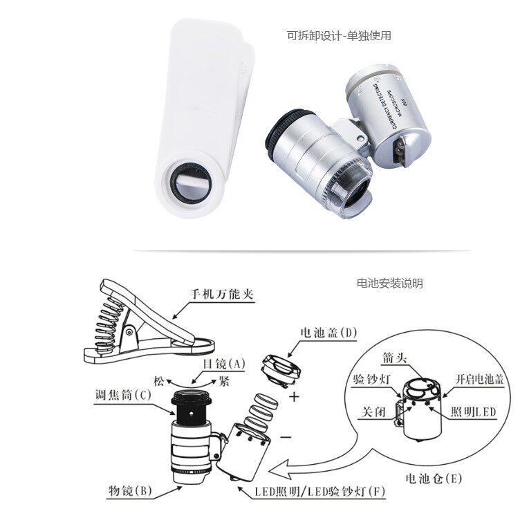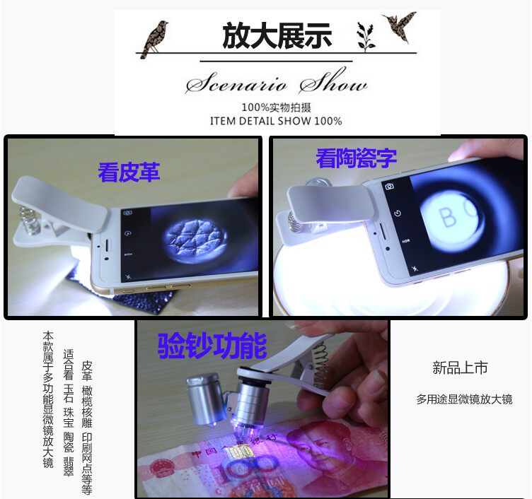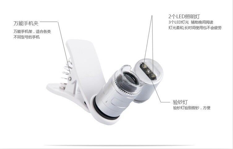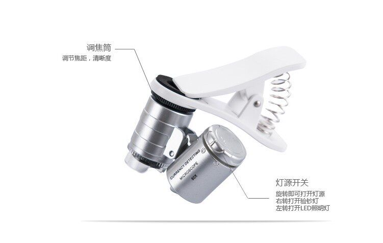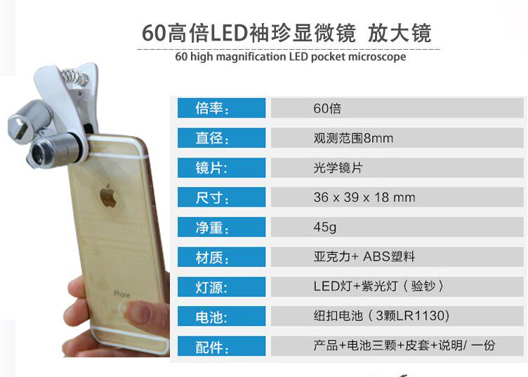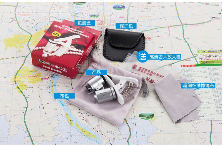 Мобильный телефон, лупа с подсветкой, ювелирное украшение, портативный микроскоп, увеличение в 60 раз