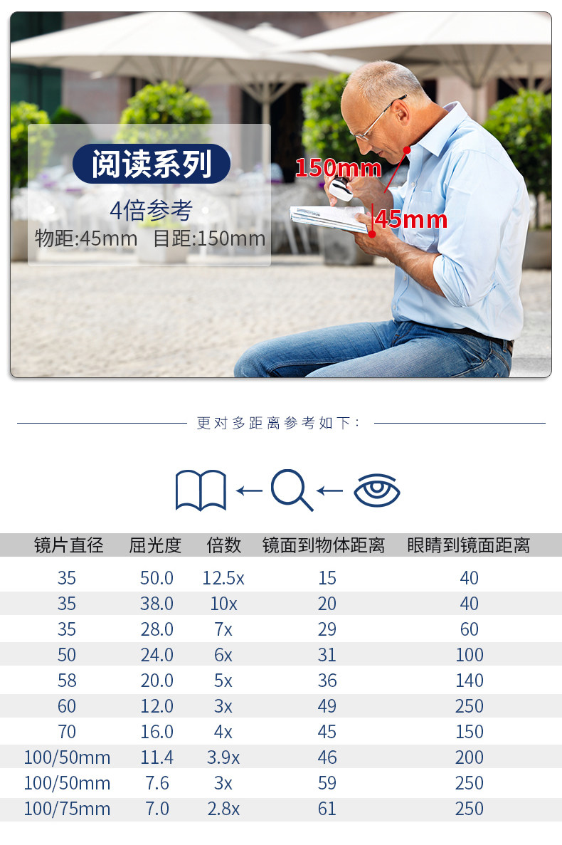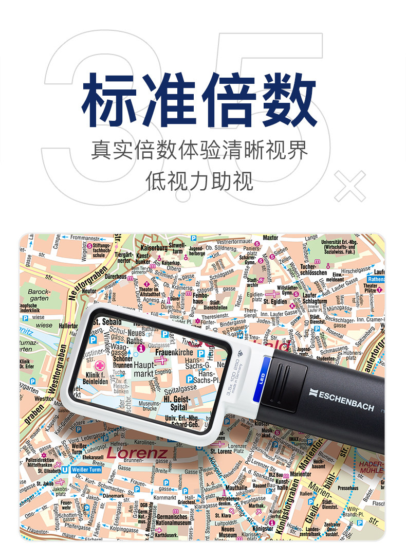 Германия Eschenbach Yishibao Genuine 3,5x/4x квадрат со светодиодными огнями для пожилых людей, читающих HD Presbyopia Visual Aid