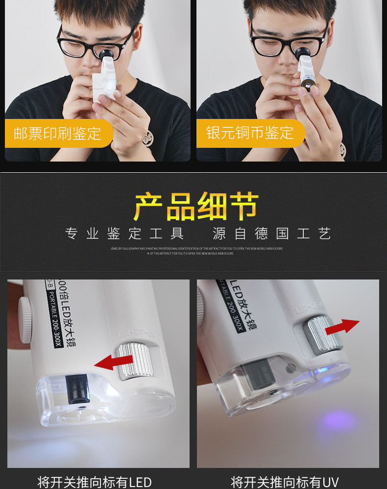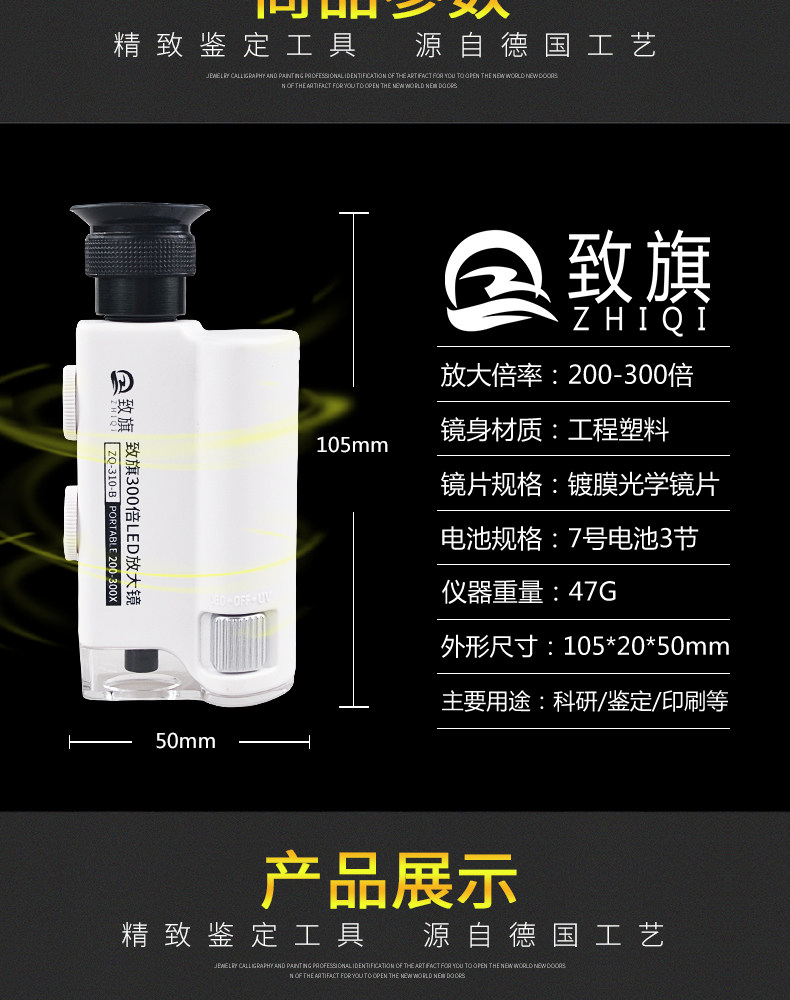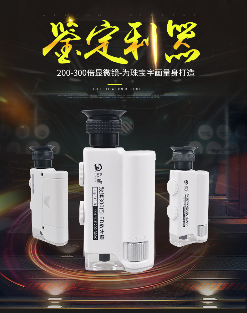 致旗 Ювелирное украшение, портативная лупа, детский маленький электронный микроскоп, портативный бриллиантовый мобильный телефон из натурального камня, увеличение в 300 раз, наука